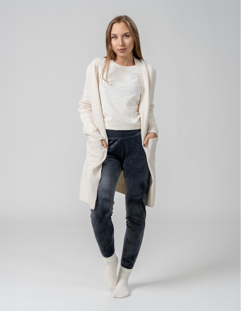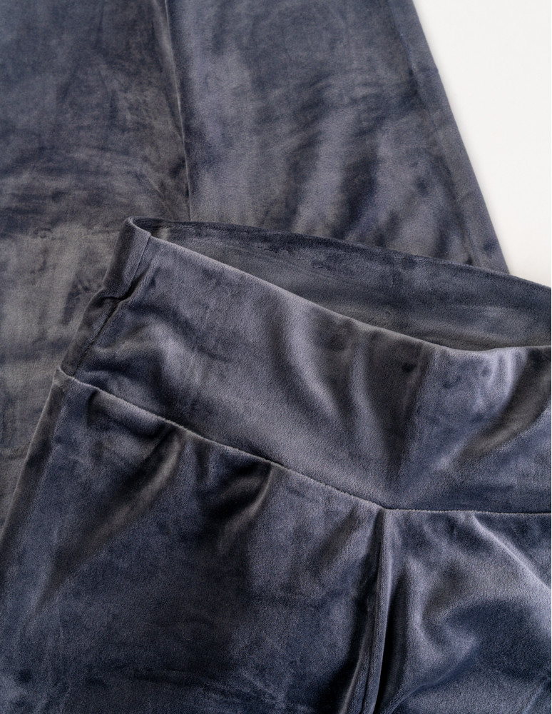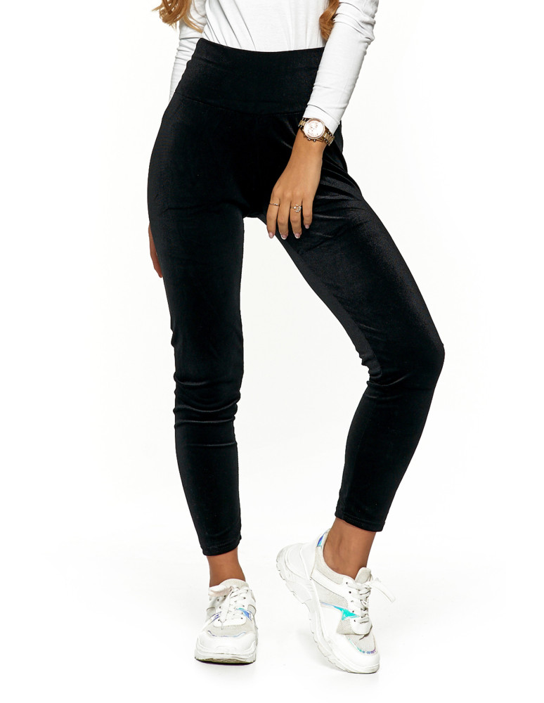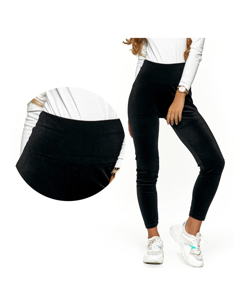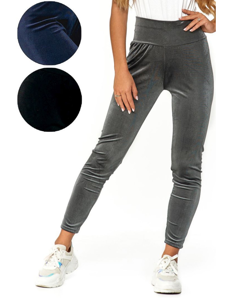 Legginsy damskie welurowe z wysokim stanem GRANATOWY