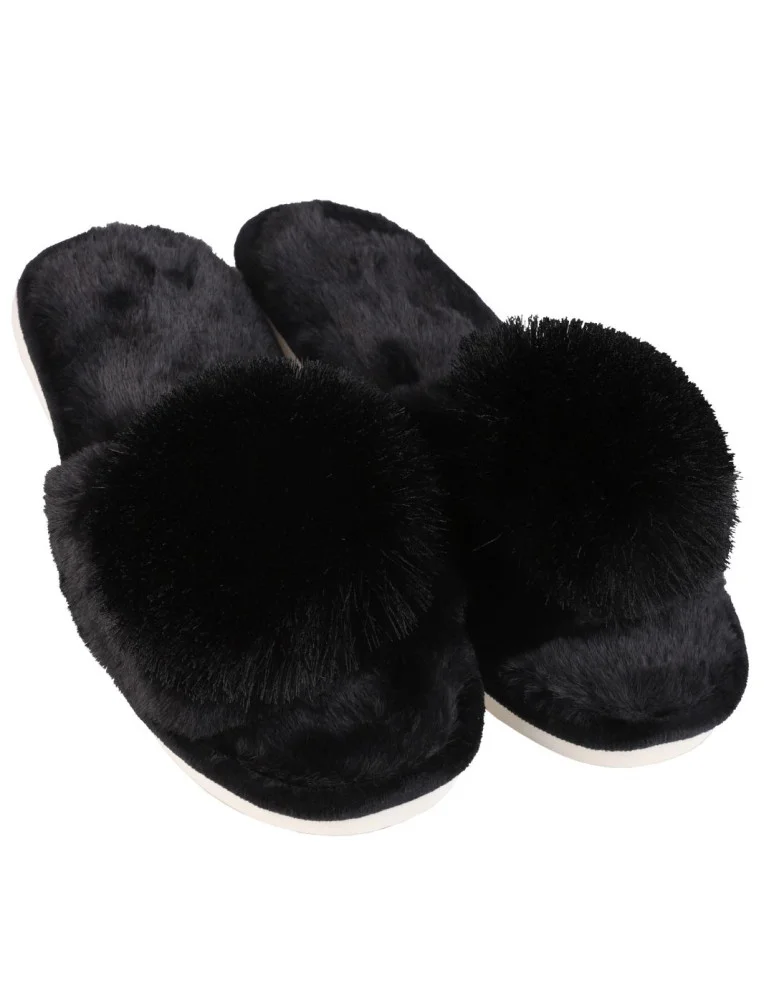 Kapcie damskie klapki domowe z ozdobnym pomponem CZARNY
