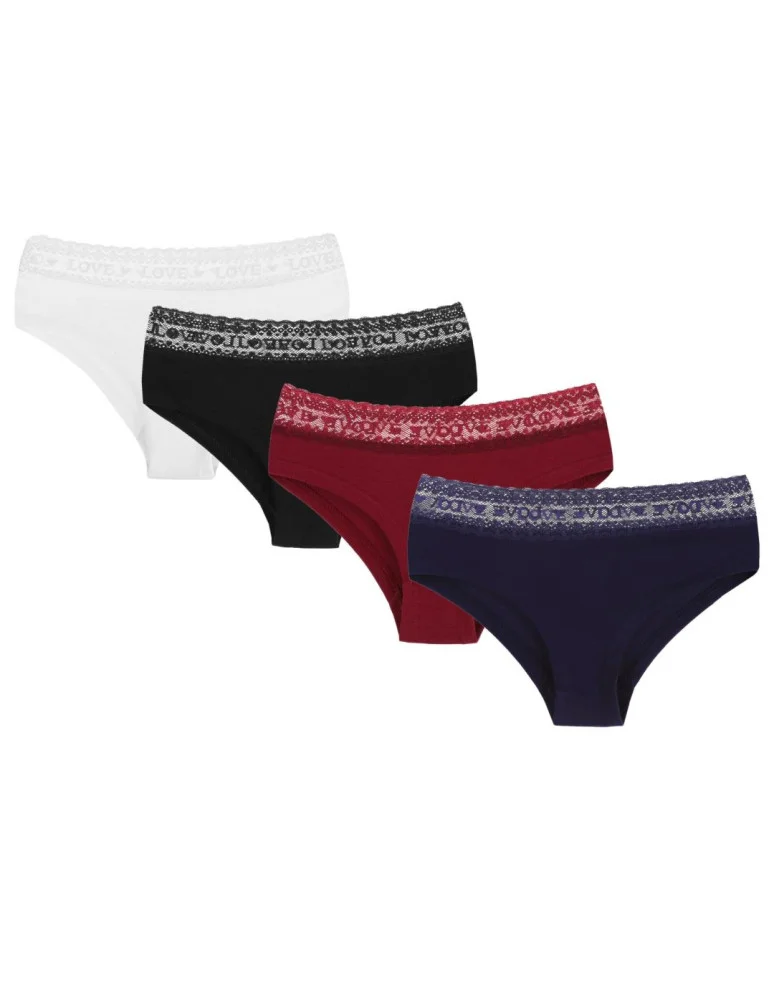 Figi damskie bawełniane z napisem love na koronce 4-pak WIELOKOLOROWY