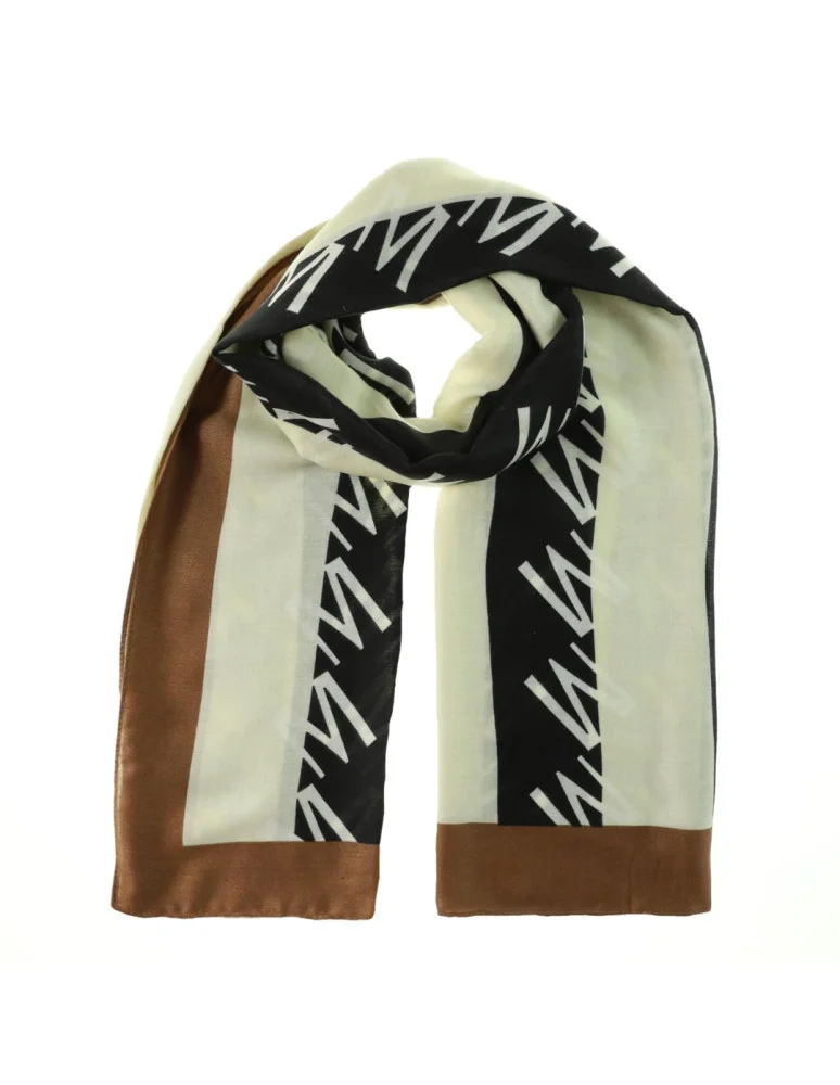 Cienki szalik damski wzorzysty JASNY BRĄZOWY