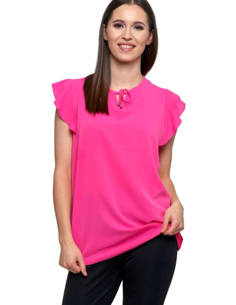 Gładka bluzka damska z motylkowym rękawkiem MALINOWY