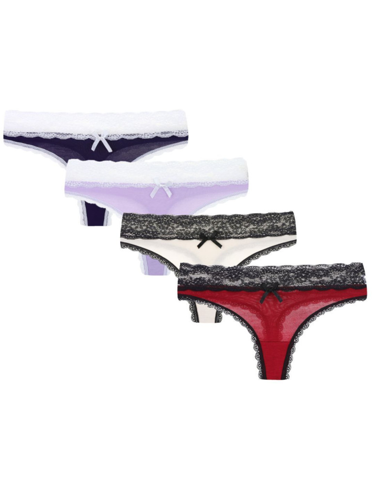 Stringi damskie bawełniane z koronkowym wykończeniem BEŻOWY