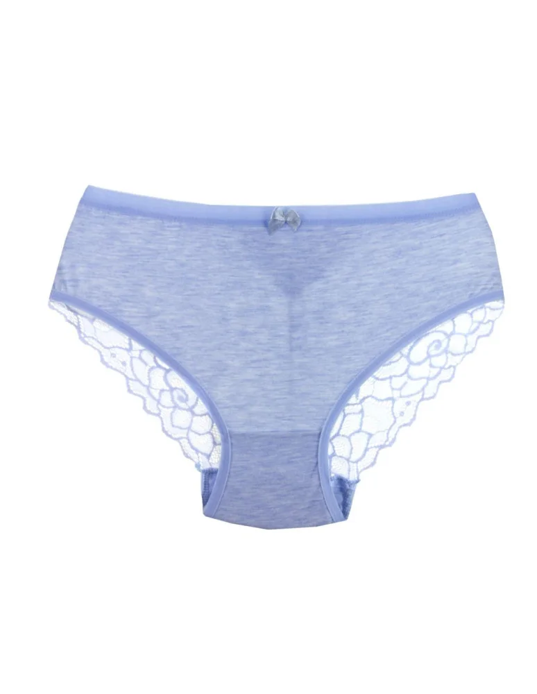 Figi damskie bawełniane z koronkowym tyłem NIEBIESKI