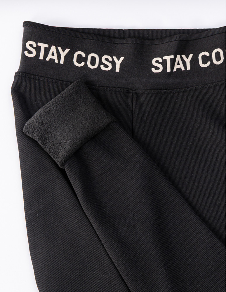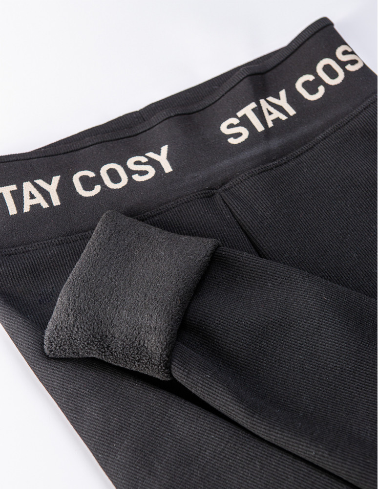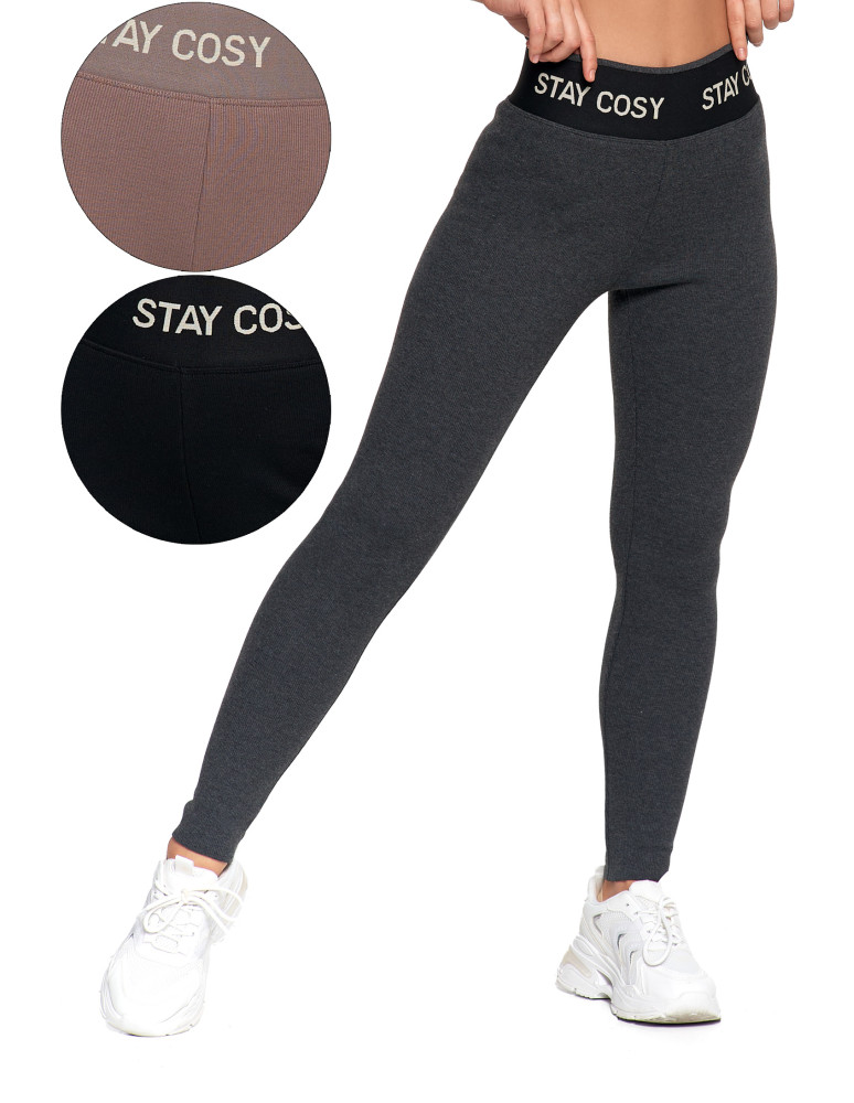 Legginsy damskie ocieplane w prążek wysoki stan GRAFIT