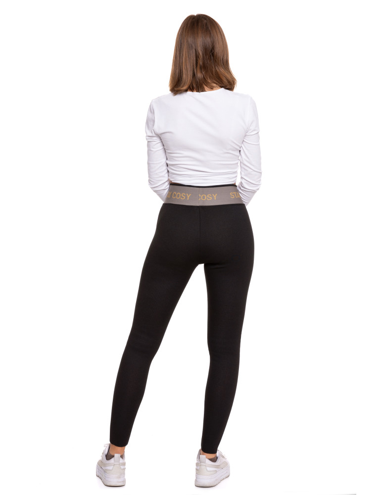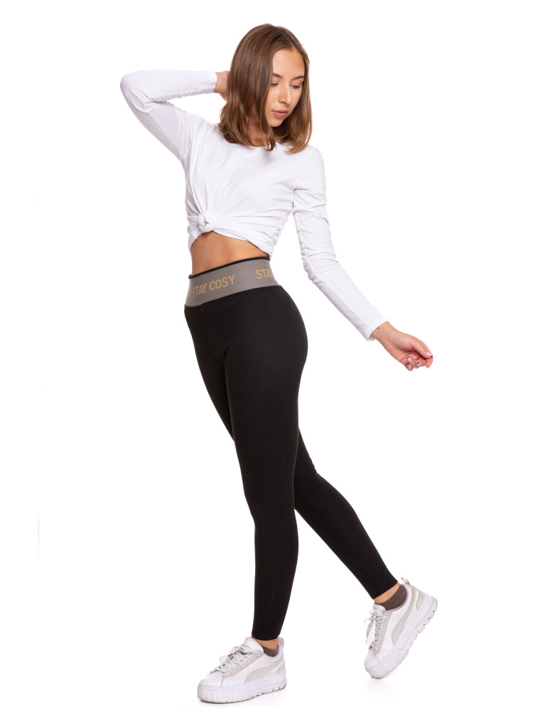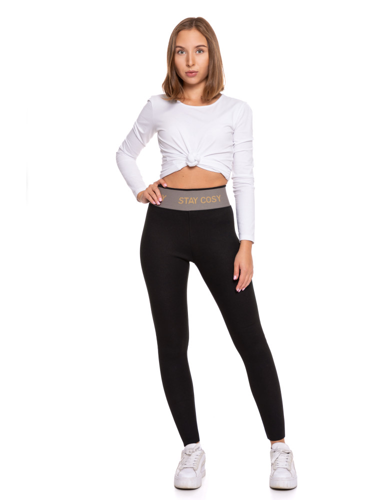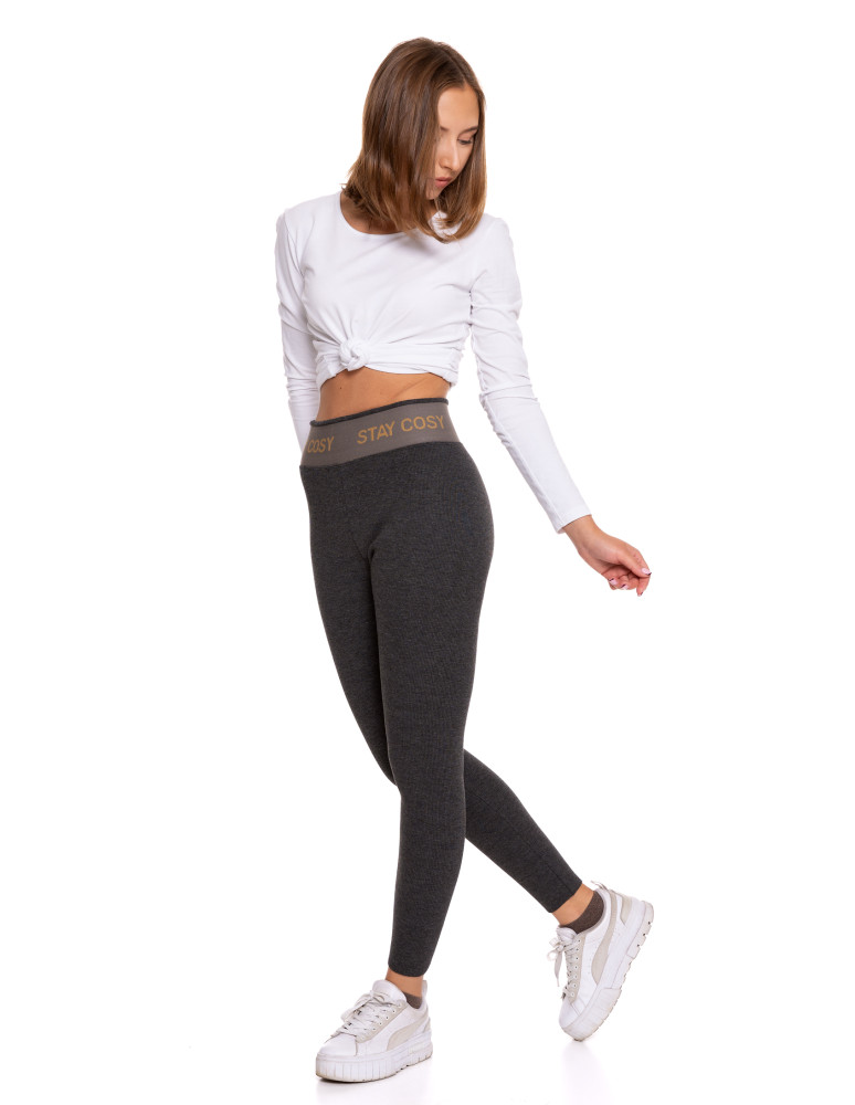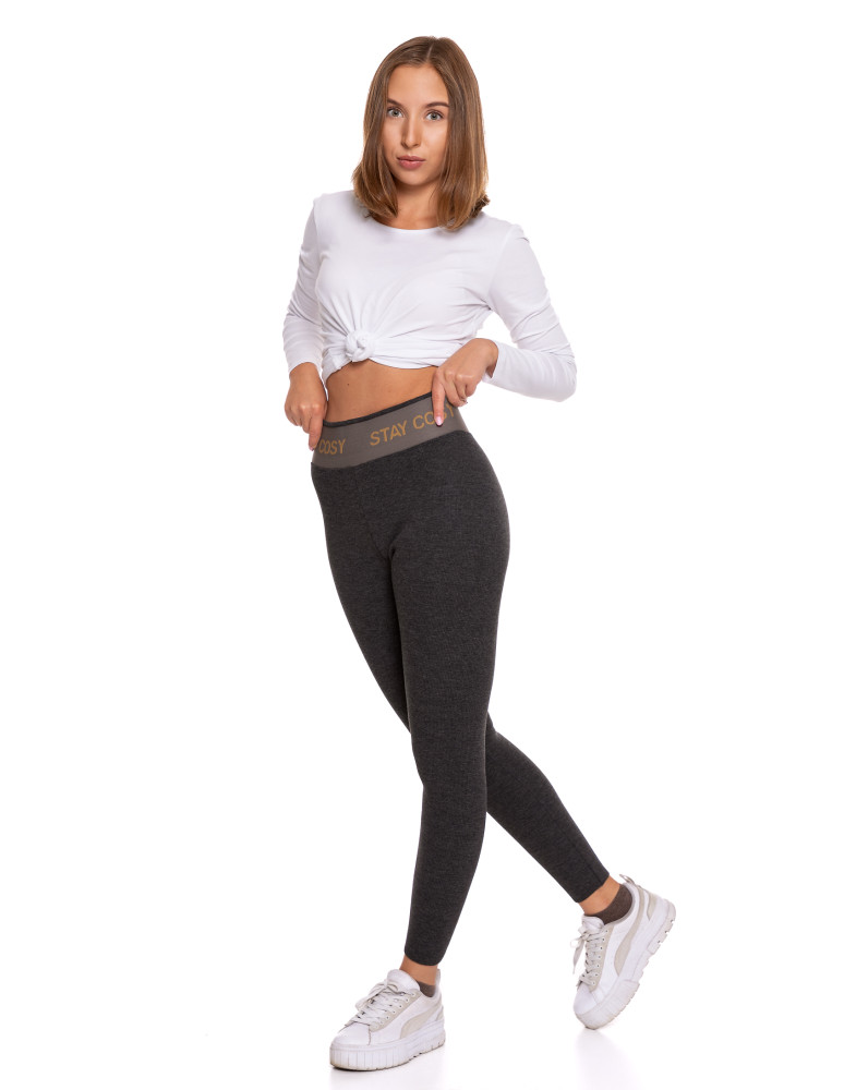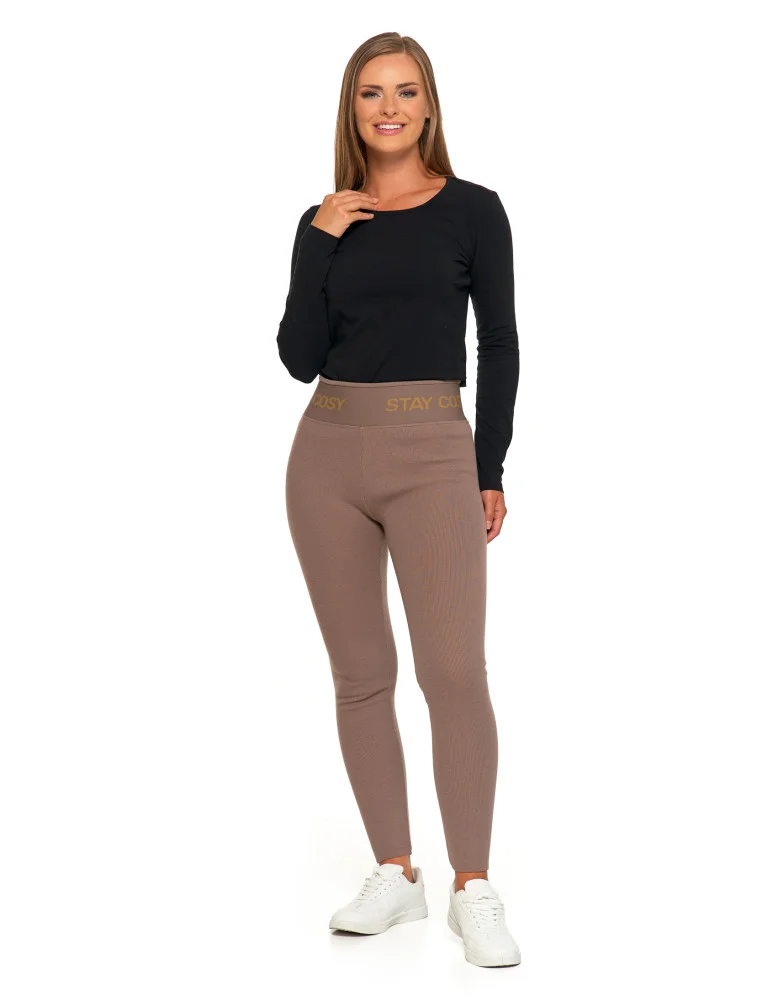 Legginsy damskie ocieplane w prążek wysoki stan MOKKA