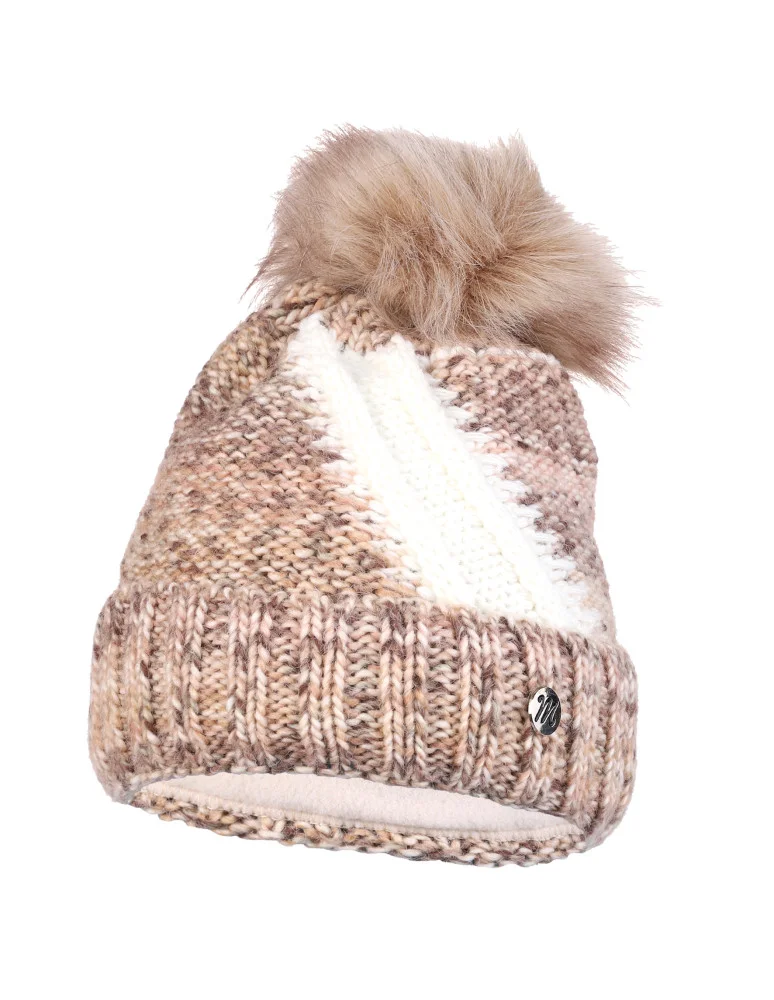 Czapka zimowa damska z pomponem i polarowym ociepleniem BEŻOWY