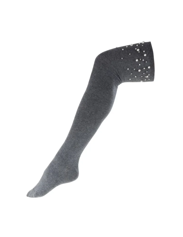 Zakolanówki damskie z ozdobnymi perełkami SZARY