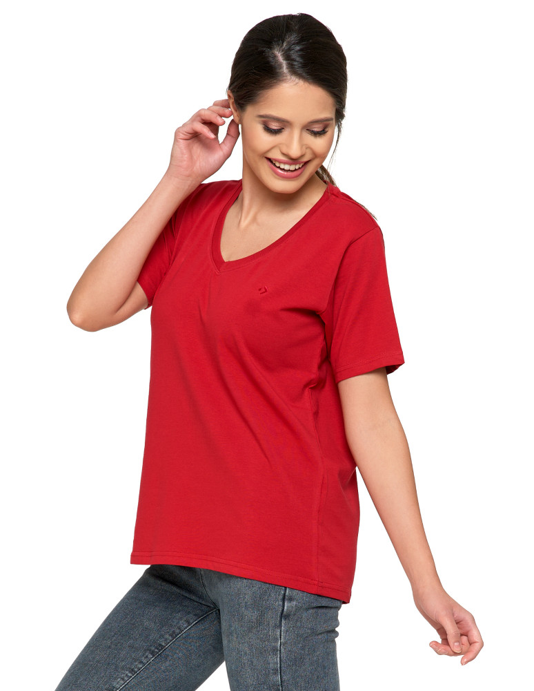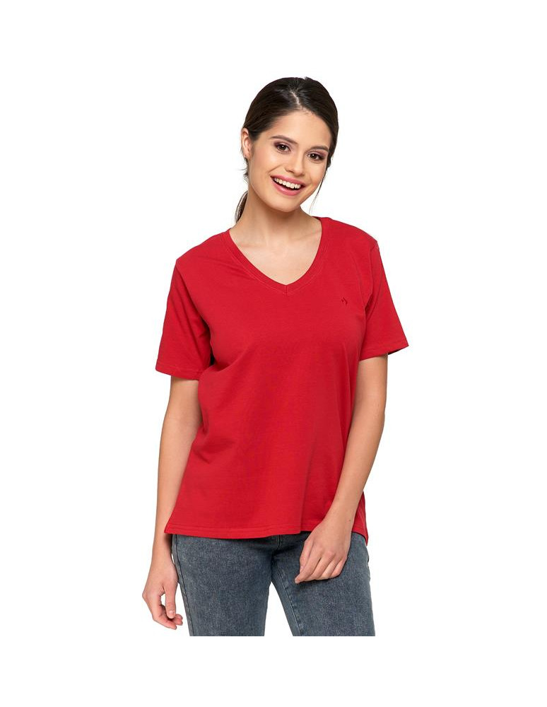 Koszulka damska bawełna Premium T-shirt dekolt w serek NIEBIESKI