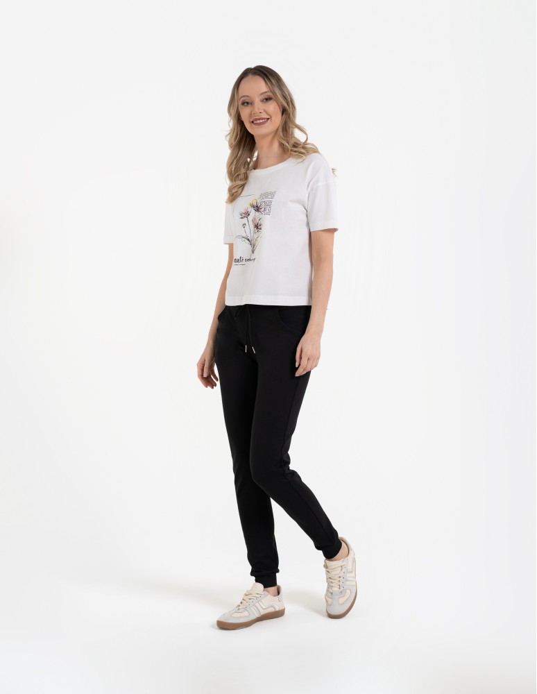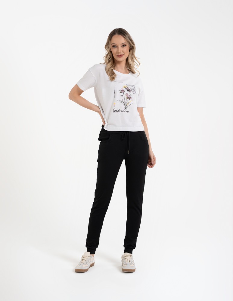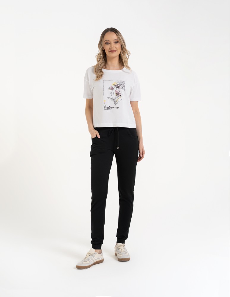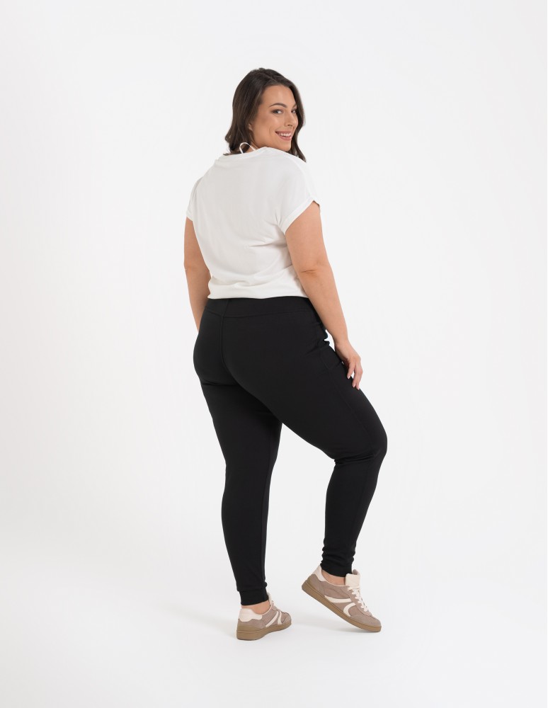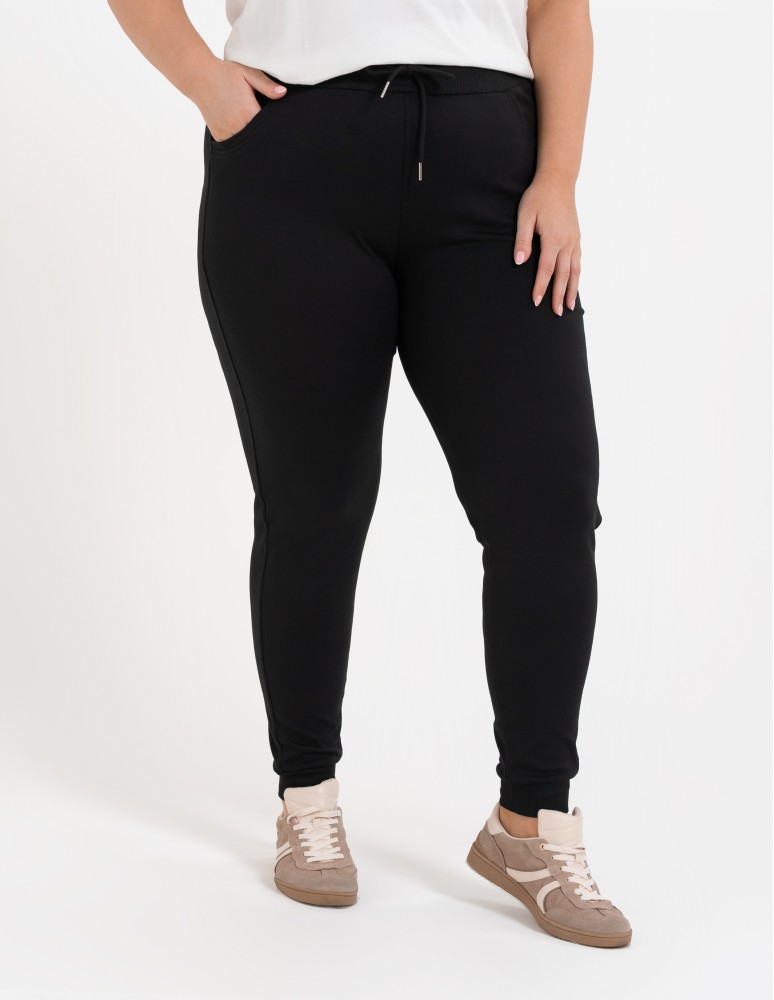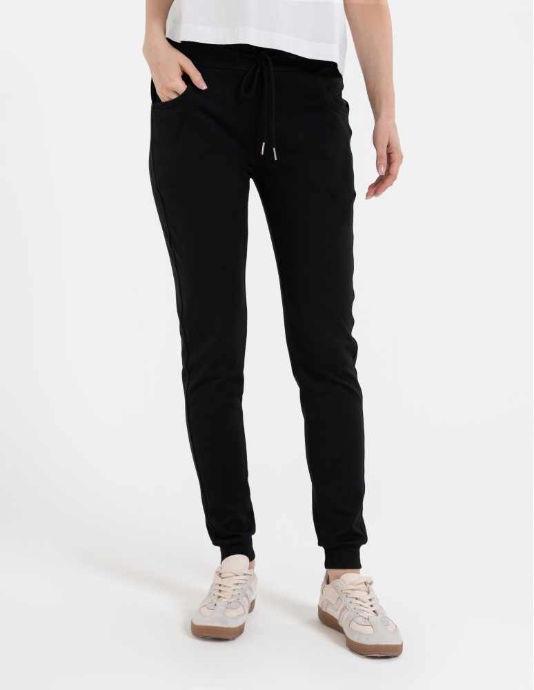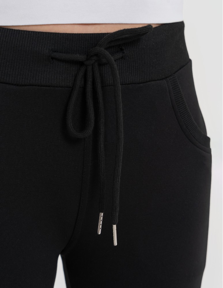 Spodnie dresowe damskie ze ściągaczami CZARNY