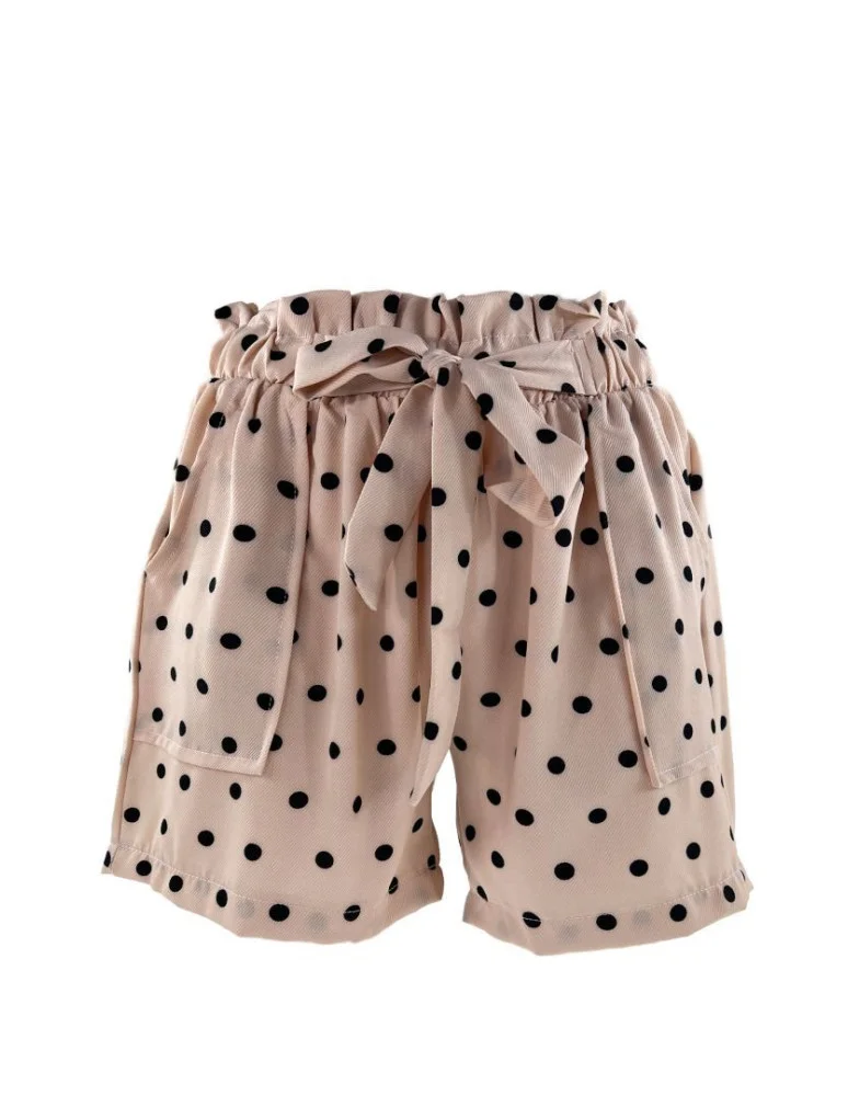 Szorty damskie z kokardą w groszki BEŻOWY