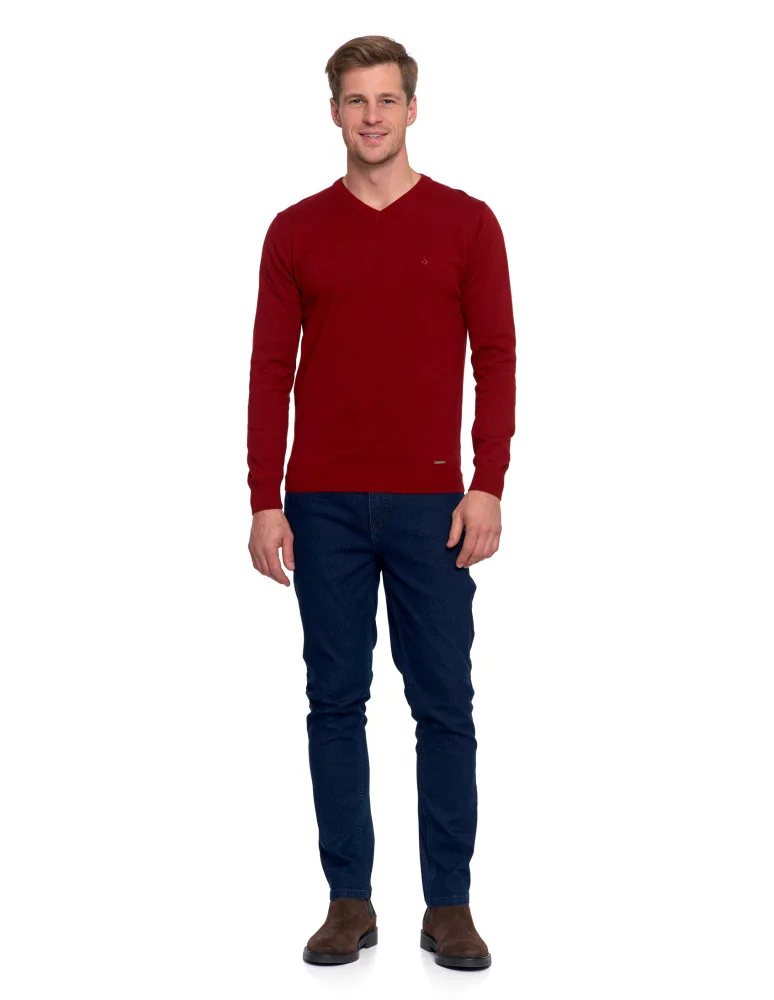Klasyczny sweter męski bawełniany o prostym kroju BORDOWY