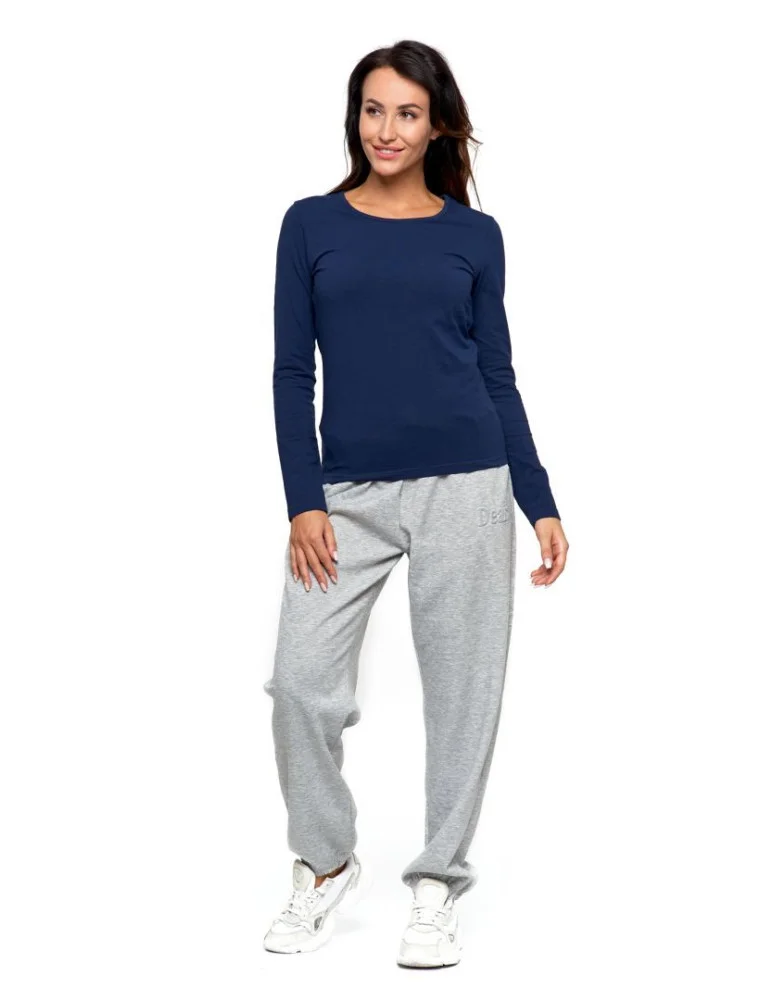 Bluzka damska z długim rękawem bawełniana gładka GRANATOWY