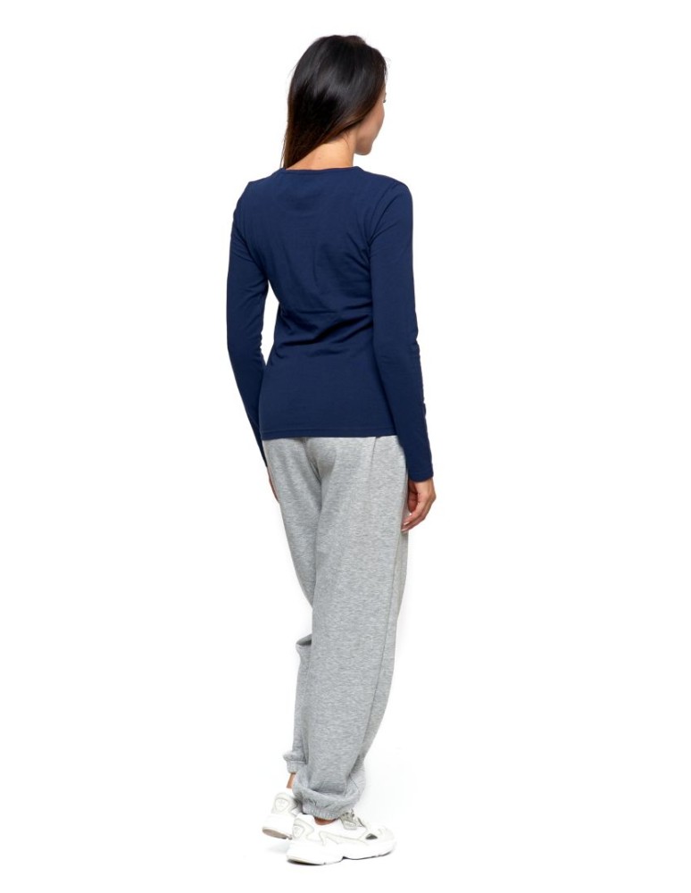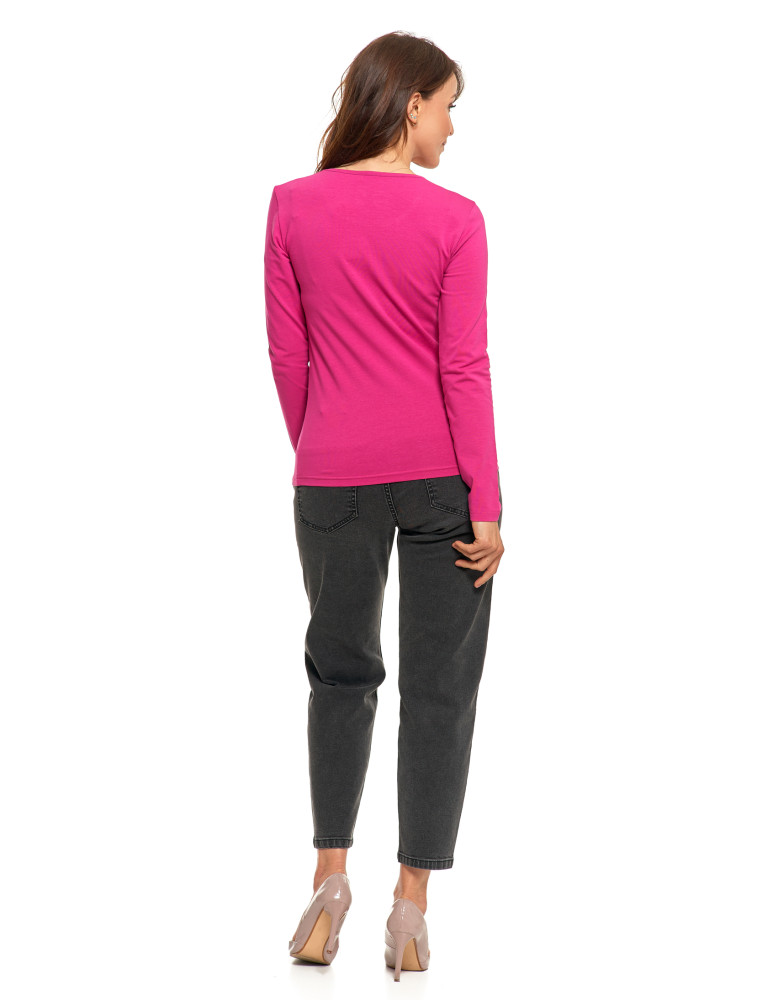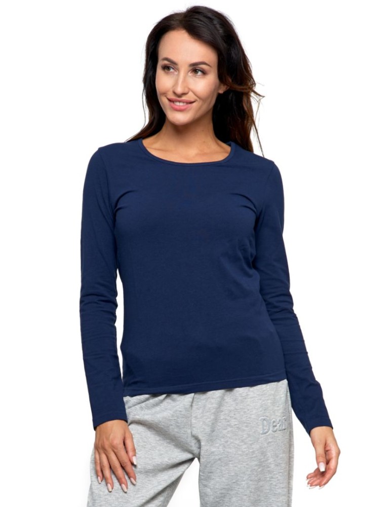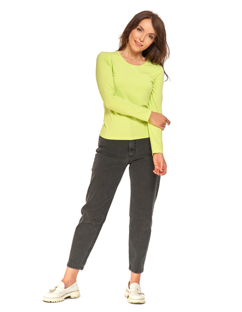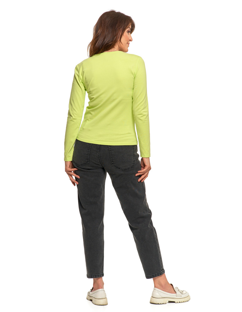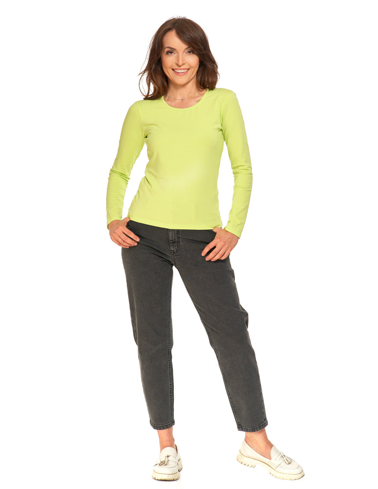 Bluzka damska z długim rękawem bawełniana gładka KREMOWY