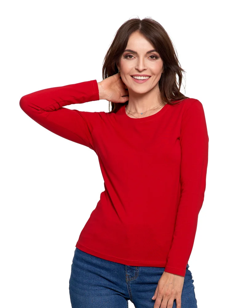 Bluzka damska z długim rękawem bawełniana gładka MALINOWY