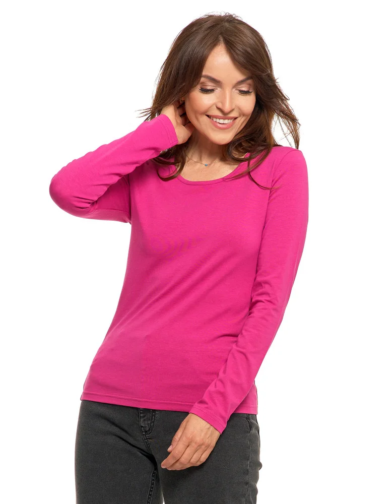 Bluzka damska z długim rękawem bawełniana gładka RÓŻOWY