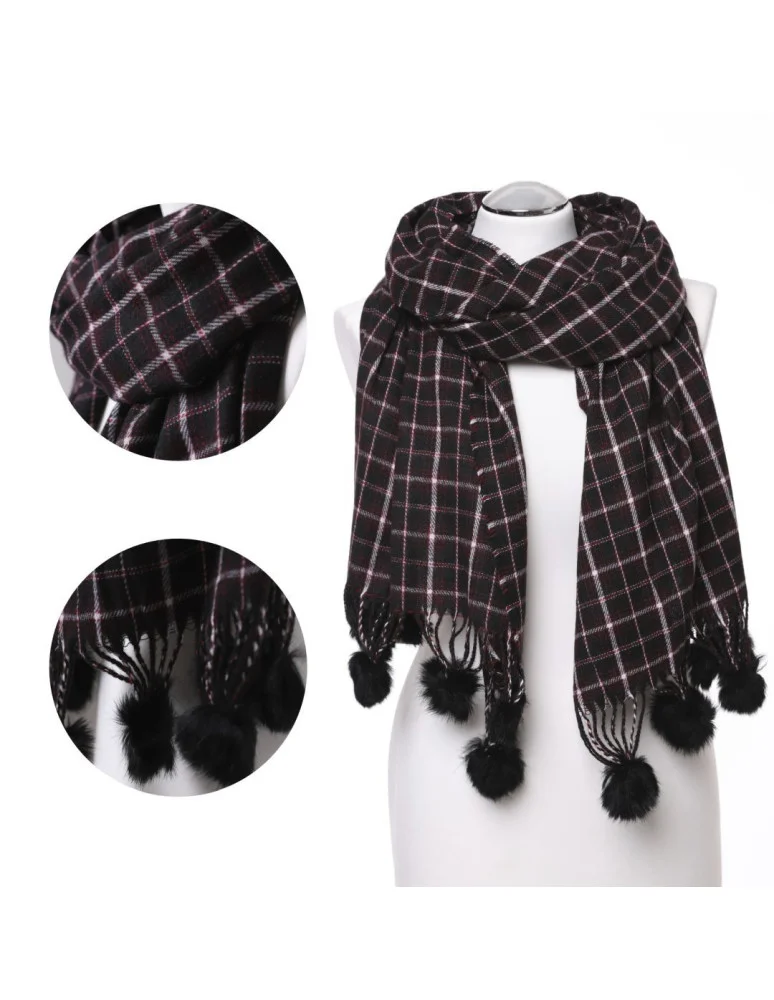 Długi szal damski ciepły na zimę w drobną kratkę BORDOWY