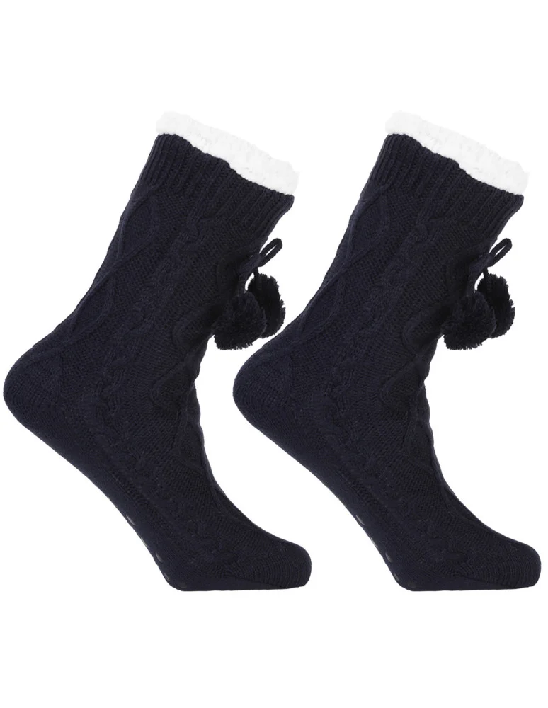 Ciepłe kapcie bambosze damskie warkoczowy splot GRANATOWY