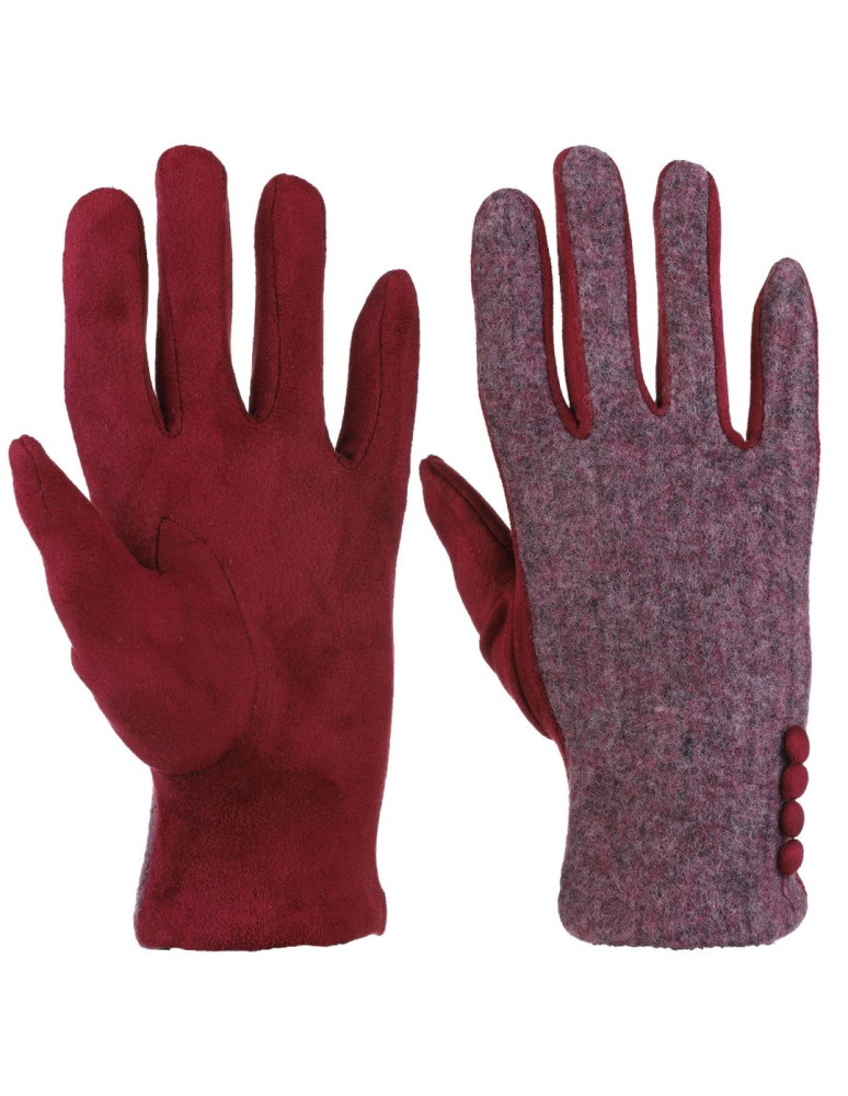 Damskie rękawiczki ocieplane z ozdobnymi guzikami CZERWONY