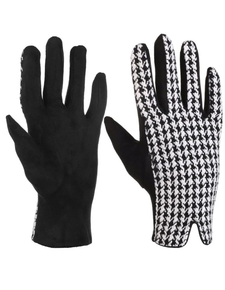 Eleganckie rękawiczki damskie w pepitkę CZARNY