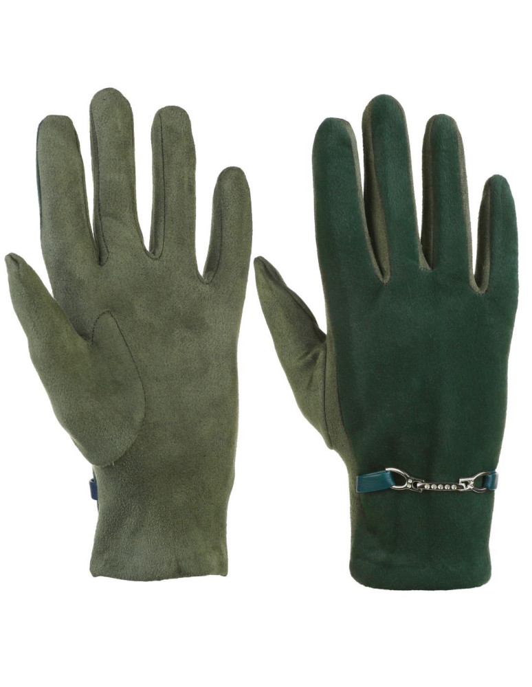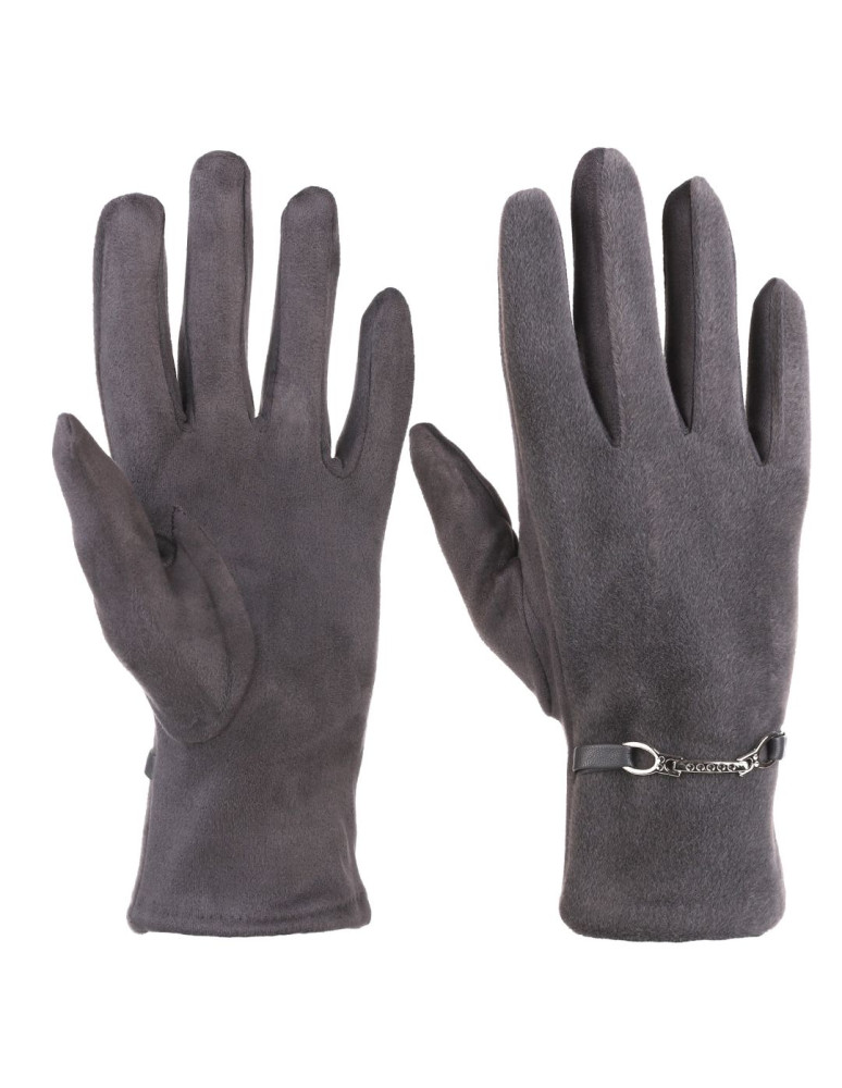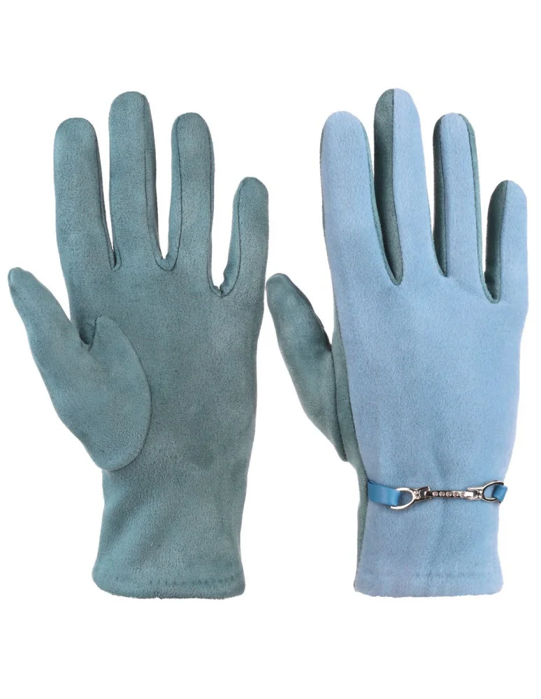Eleganckie rękawiczki damskie zamszowe z klamrą NIEBIESKI