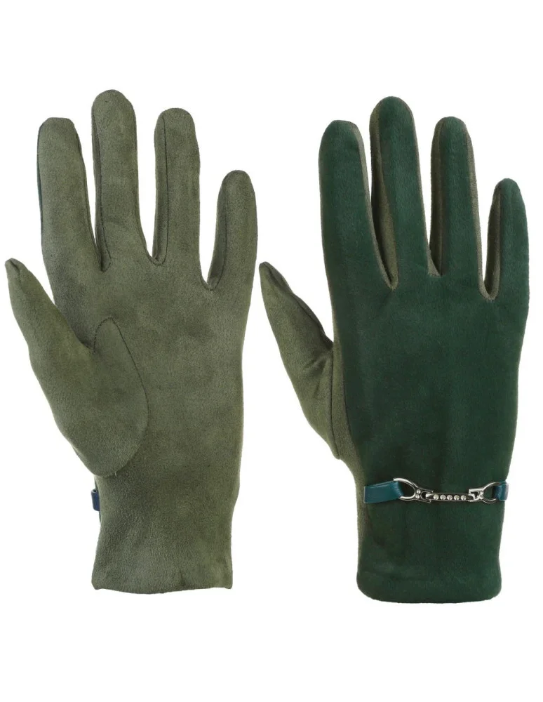 Eleganckie rękawiczki damskie zamszowe z klamrą ZIELONY