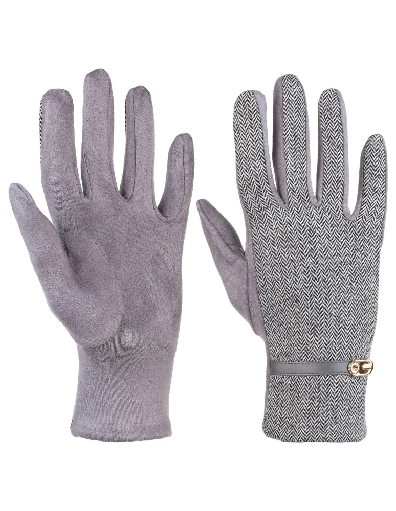 Eleganckie rękawiczki damskie ciepłe w jodełkę SZARY