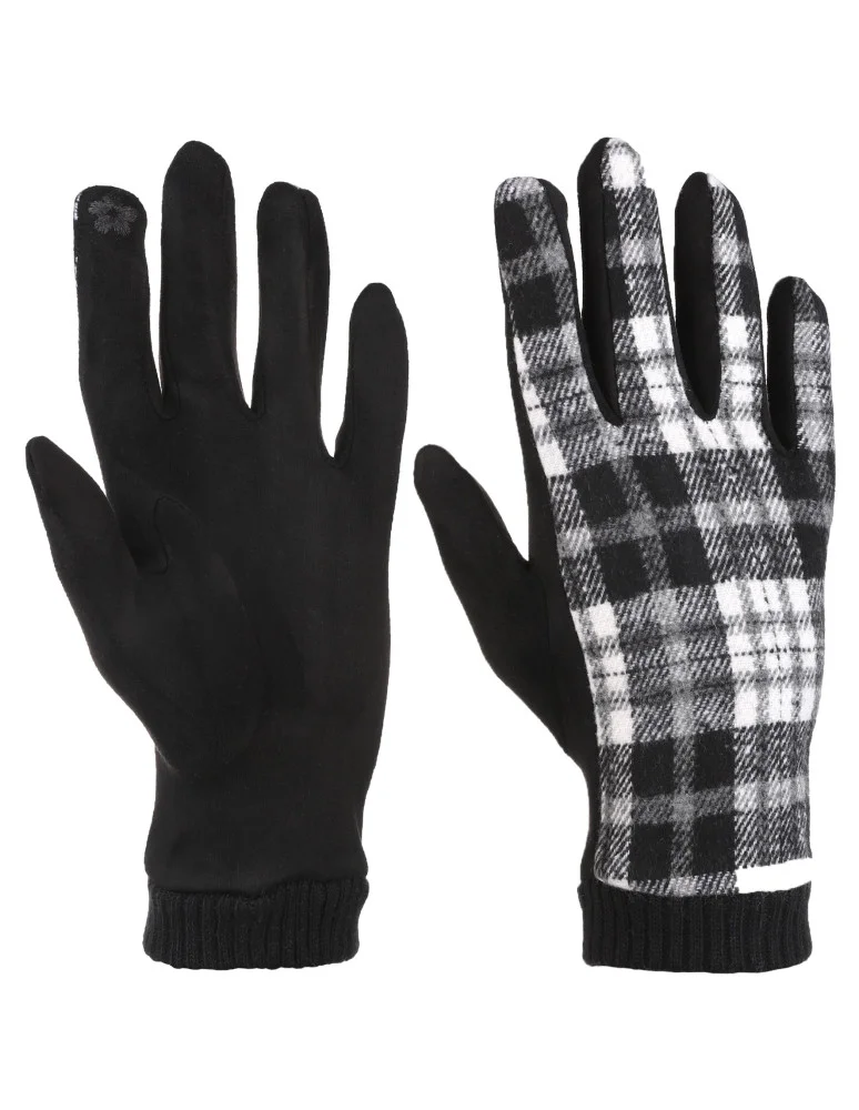 Damskie zimowe rękawiczki w kratkę CZARNY