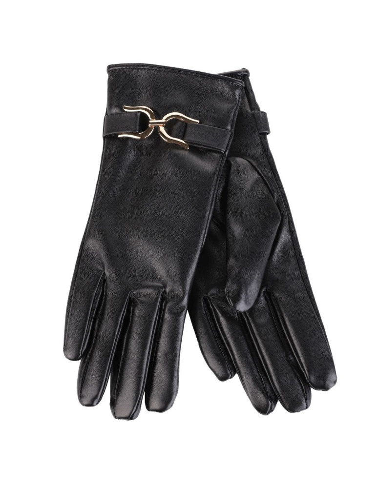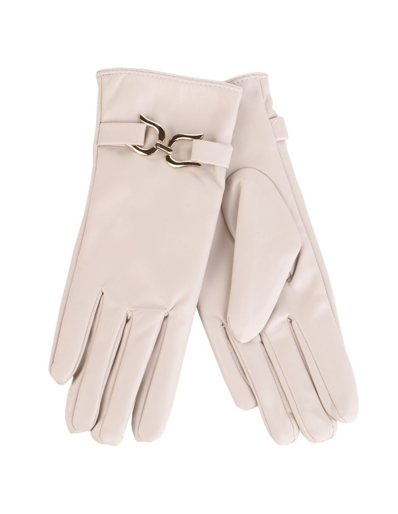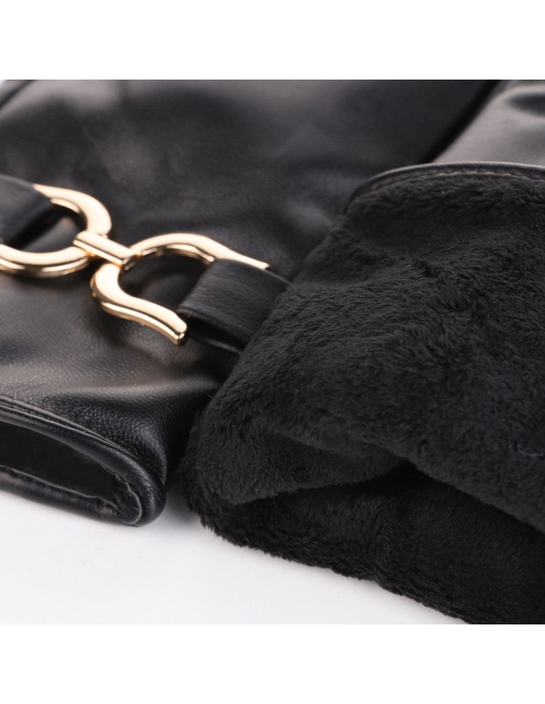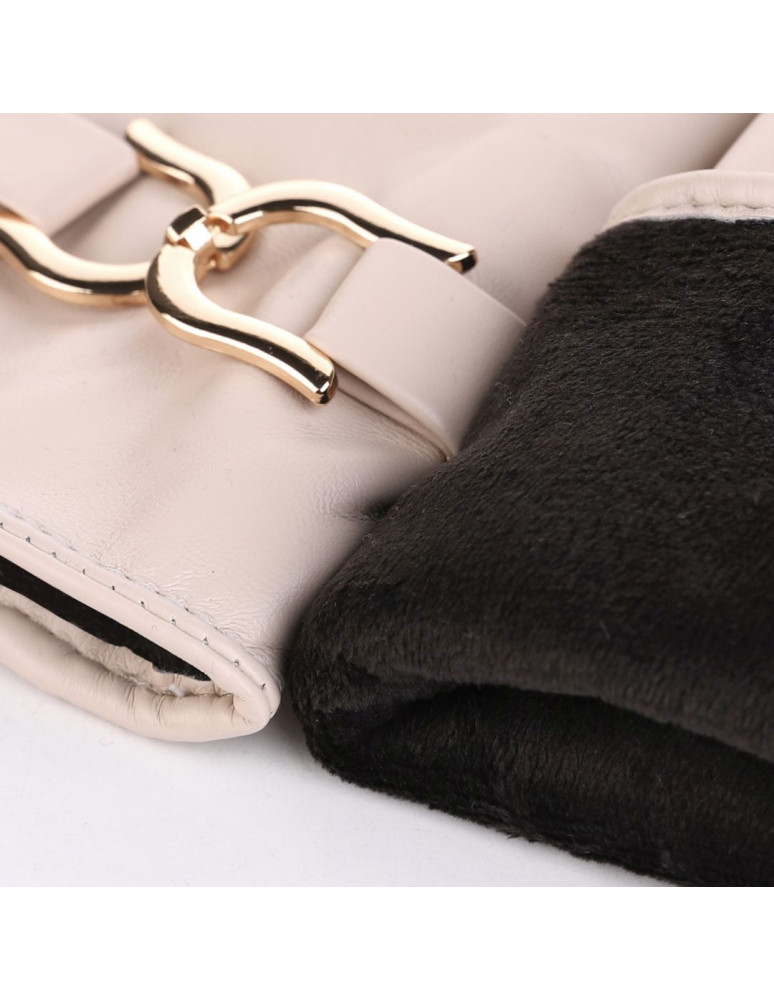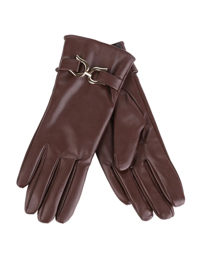 Eleganckie rękawiczki damskie eko skóra ocieplane z klamrą BRĄZOWY