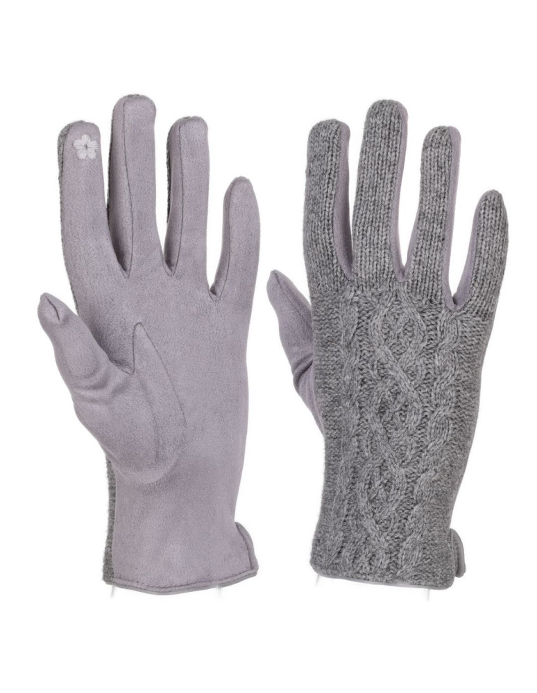 Rękawiczki damskie z 40% dodatkiem wełny. Rękawiczki to absolutny niezbędnik w okresie jesienno-zimowym. Te z dodatkiem wełny skutecznie ogrzeją dłonie, nawet podczas mroźnych dni. Z góry rękawiczki zdobione są wełnianym, sweterkowym wzorem. Od wewnętrzej strony dłoni materiał przypomina zamsz. W okolicach nadgarstka rękawiczki wykończone zostały eko skórą. Na palec wskazujący został naniesiony specjalny haft, umożliwiający obsługę ekranów dotykowych.