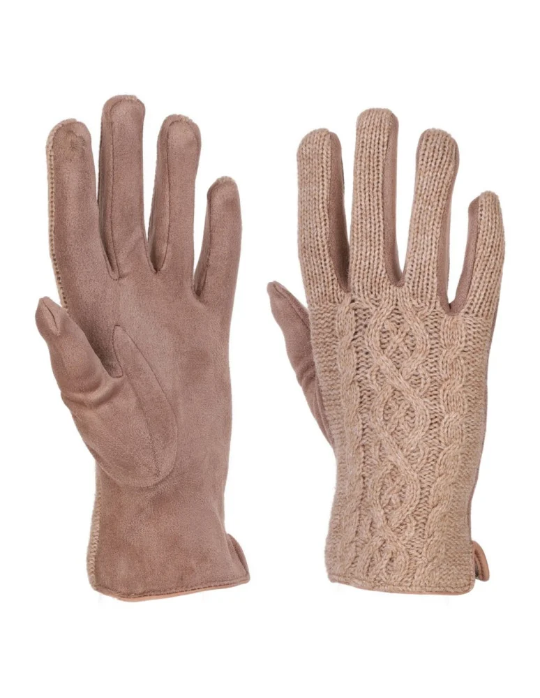 Rękawiczki damskie sweterkowe z wełną BEŻOWY