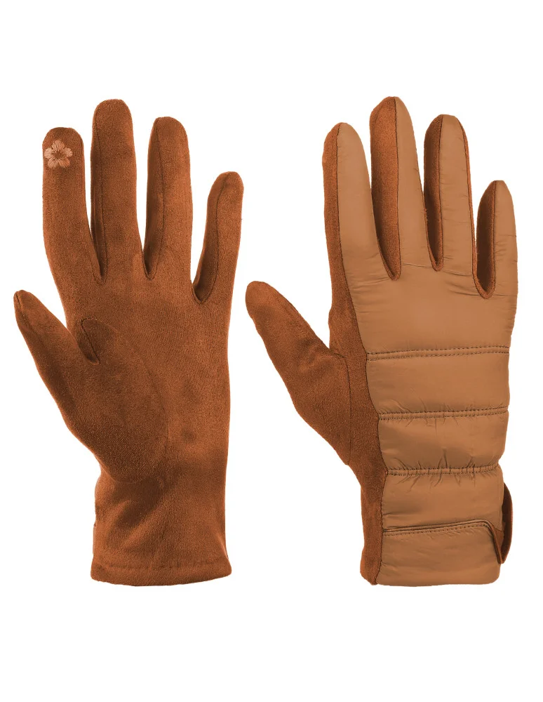 Rękawiczki damskie eleganckie dotykowe BRĄZOWY
