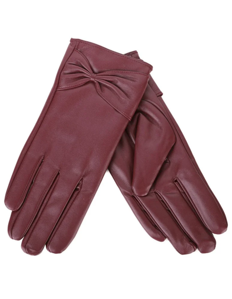 Rękawiczki damskie z eko skóry ocieplane futerkiem BORDOWY