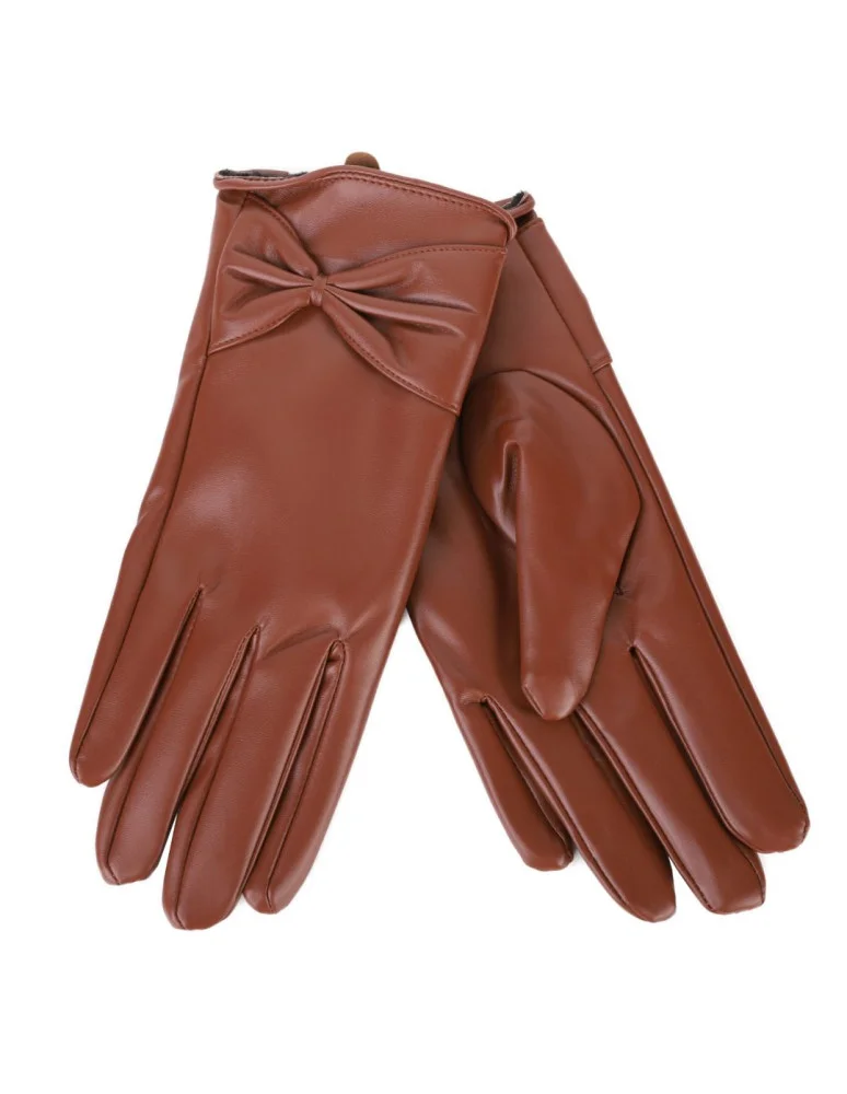 Rękawiczki damskie z eko skóry ocieplane futerkiem BRĄZOWY