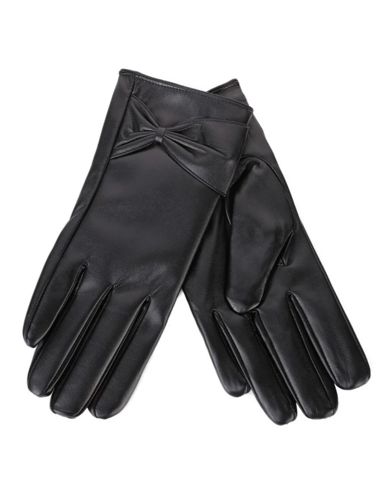 Rękawiczki damskie z eko skóry ocieplane futerkiem CZARNY
