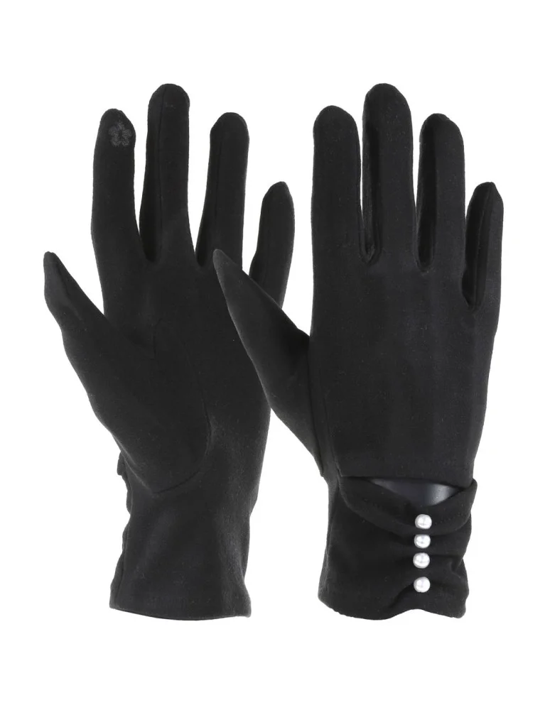 Damskie rękawiczki z perełkami CZARNY