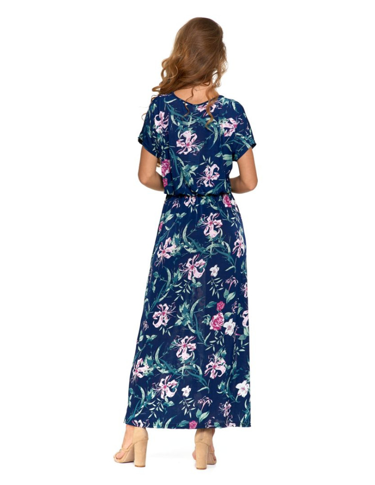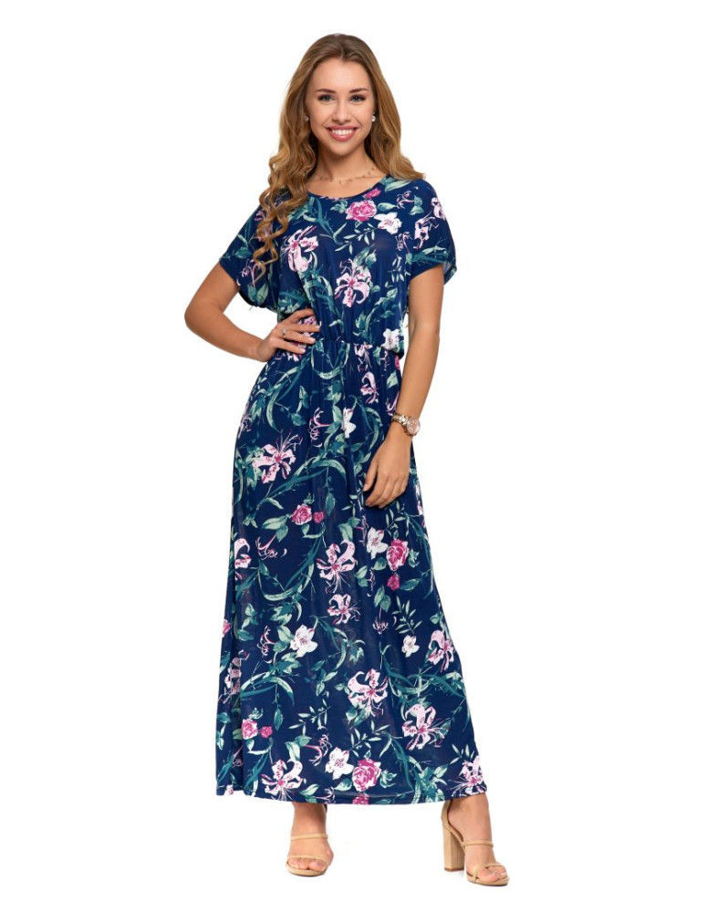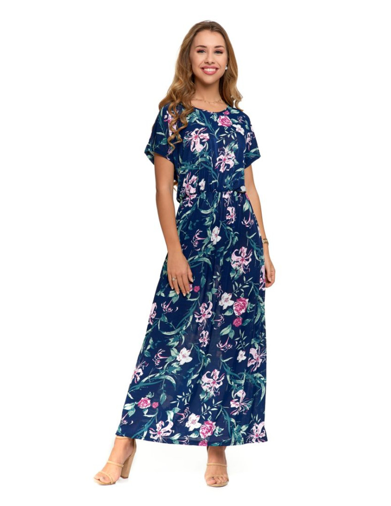 Długa sukienka damska w kwiatowy wzór CZARNY