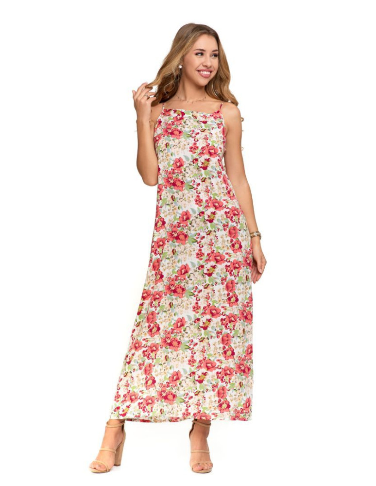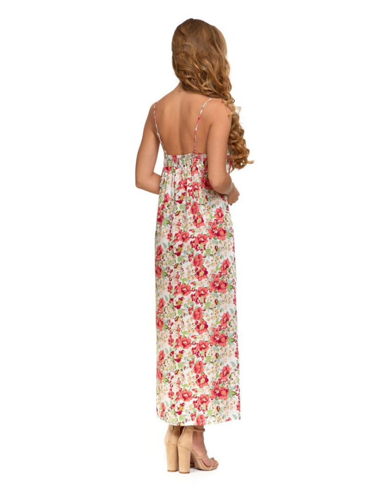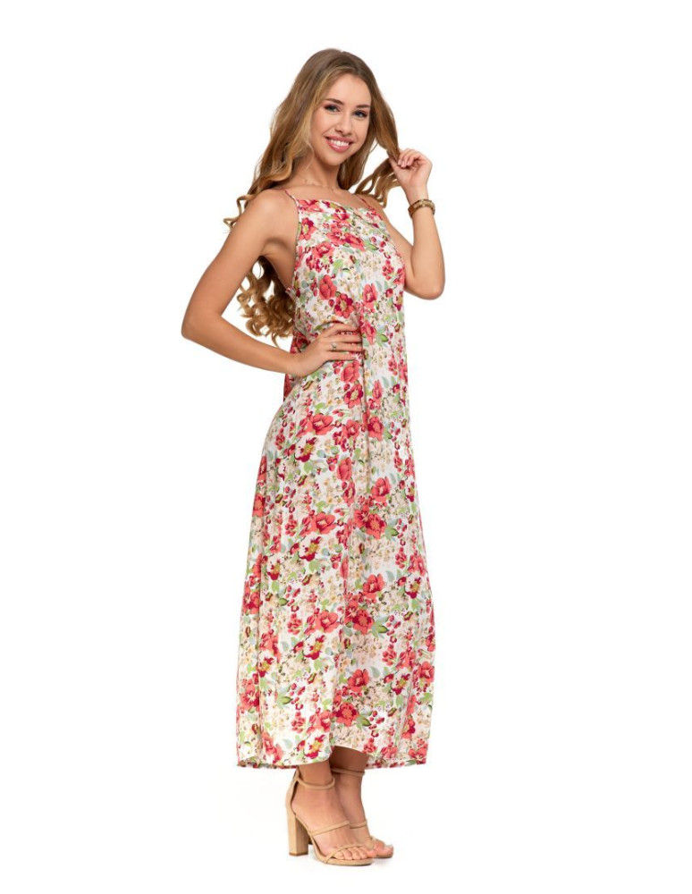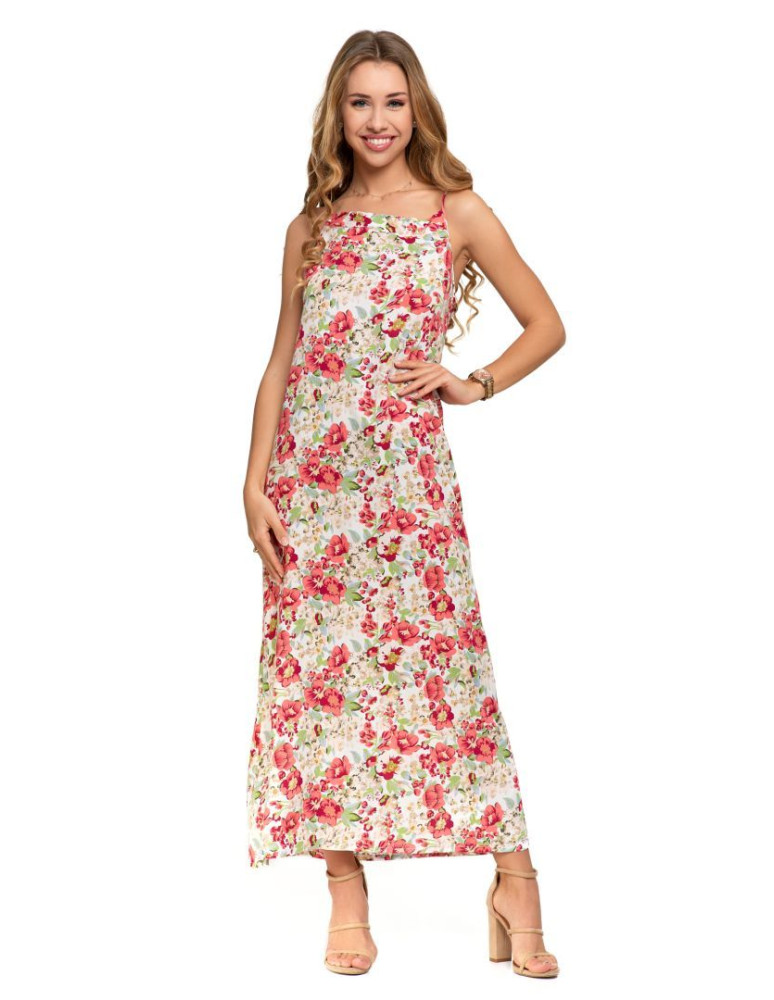 Długa sukienka damska wiskozowa w kwiatowy wzór CZARNY