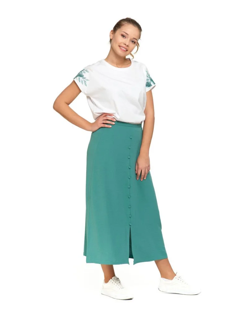 Spódnica damska midi zwiewna z wiązaniem w pasie ZIELONY