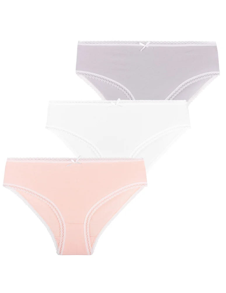Majtki figi damskie bawełniane w pastelowych kolorach 3-pak WIELOKOLOROWY