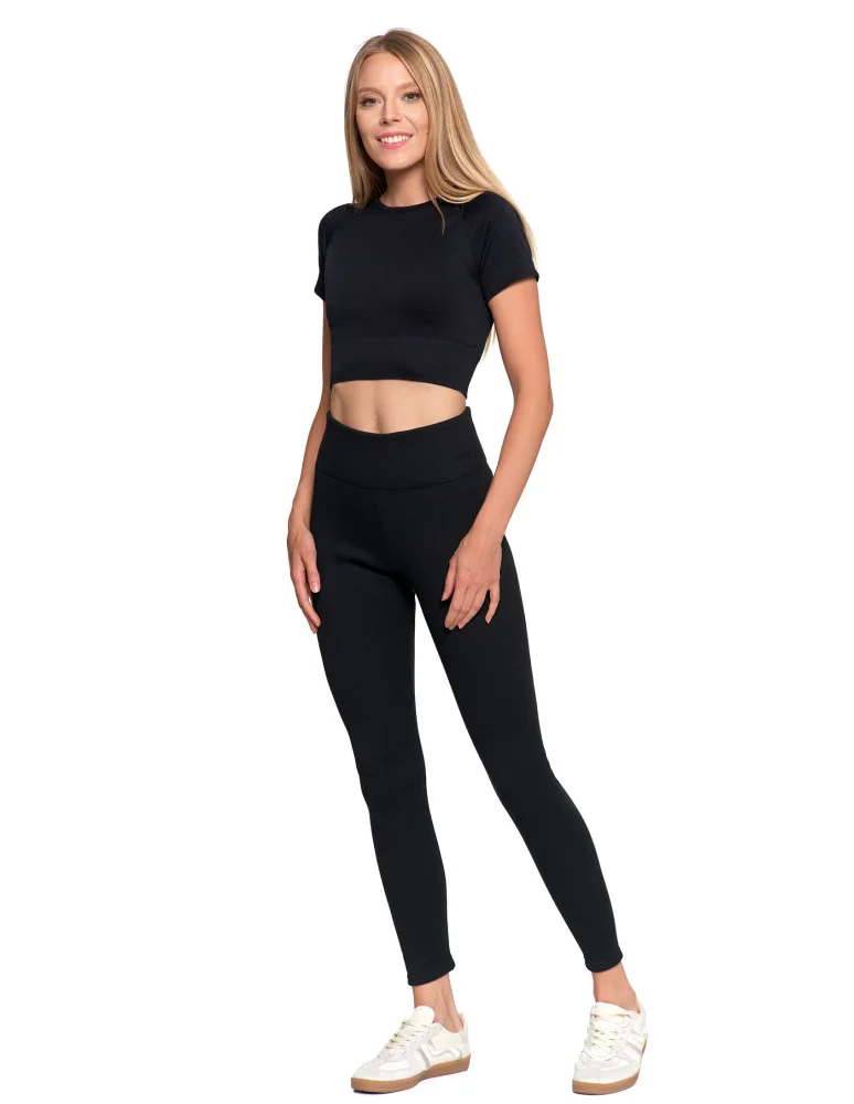 Prążkowane legginsy damskie z wysokim stanem ocieplane CZARNY