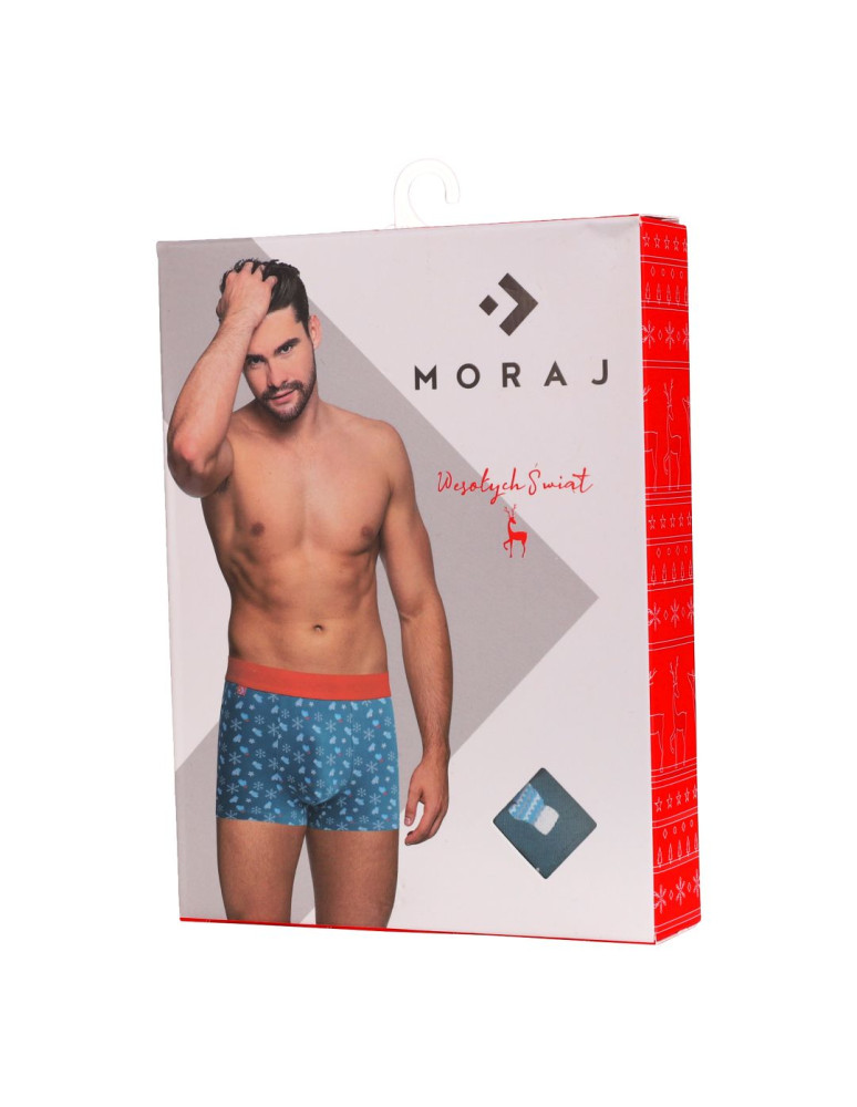 Bokserki męskie bawełniane w świąteczny wzór NIEBIESKI