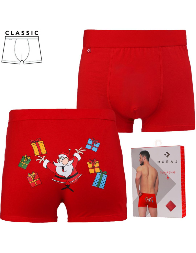 Majtki bokserki męskie świąteczny wzór Mikołaja zabawne CZERWONY