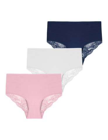 Majtki figi bikini damskie z koronkowym wykończeniem 3-pak WIELOKOLOROWY