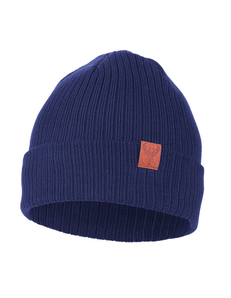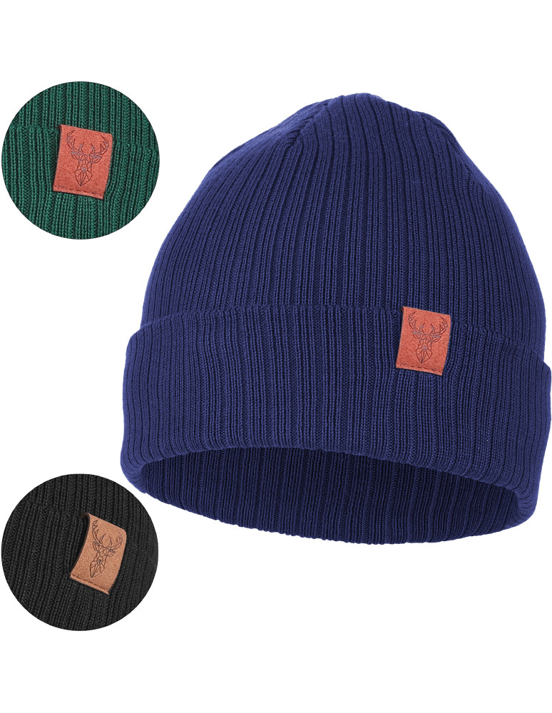 Czapka damska typu beanie w prążek gładka GRANATOWY