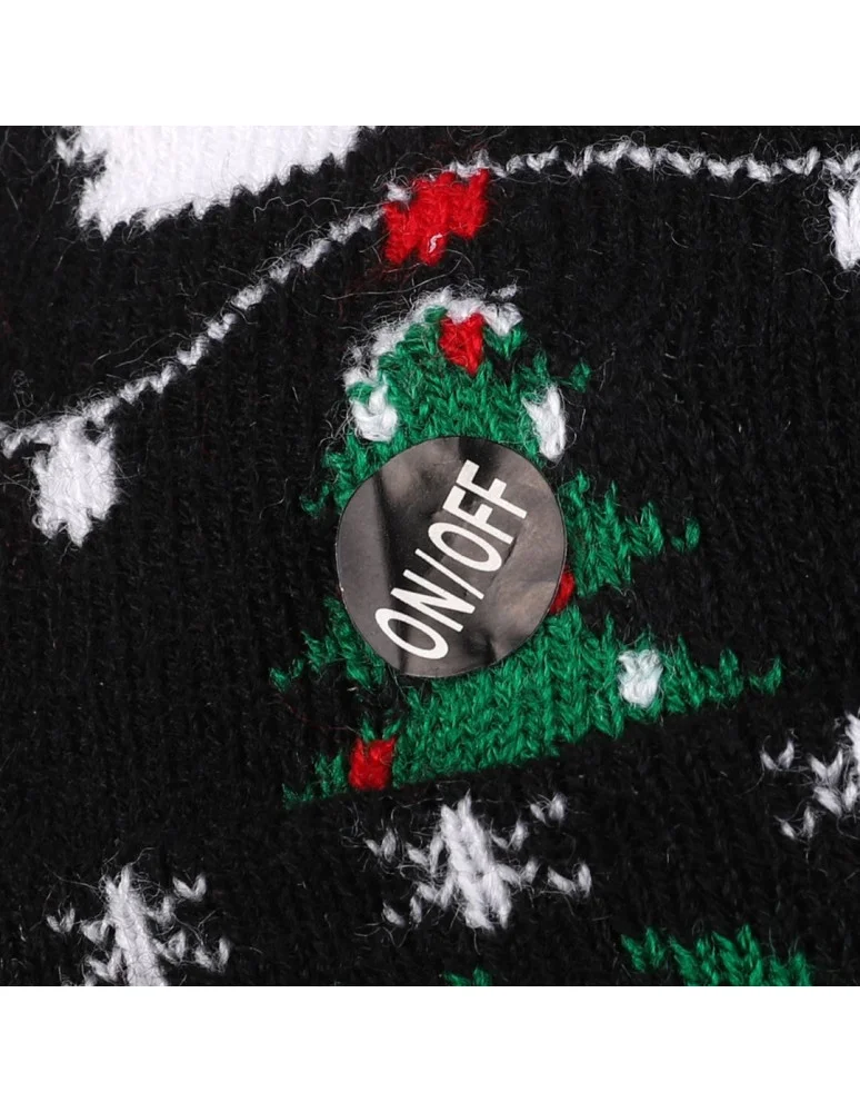 Czapka zimowa świąteczna z ledami i pomponem CZARNY