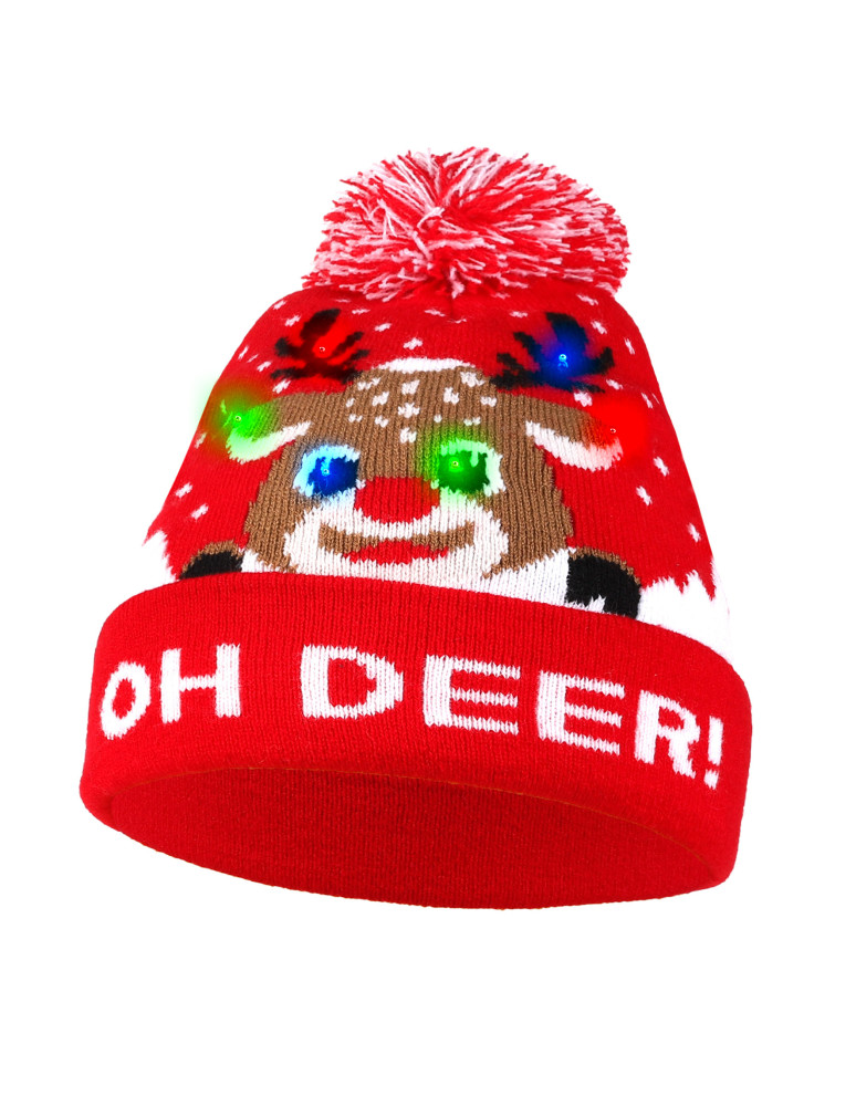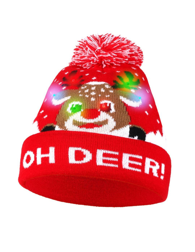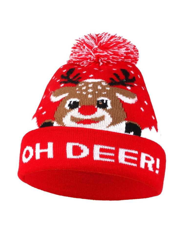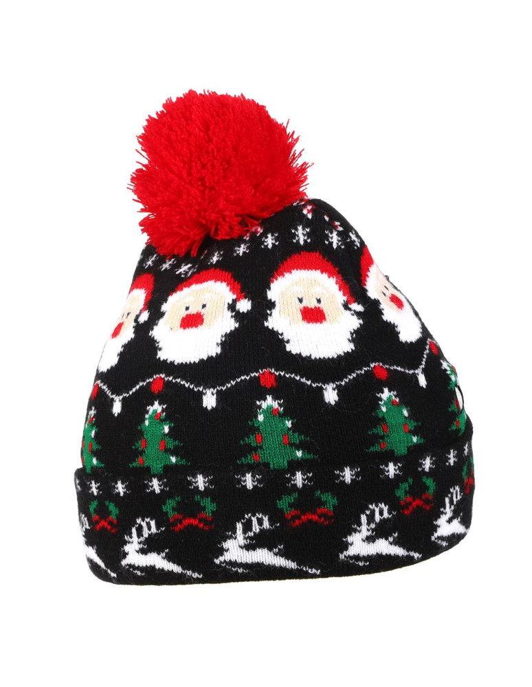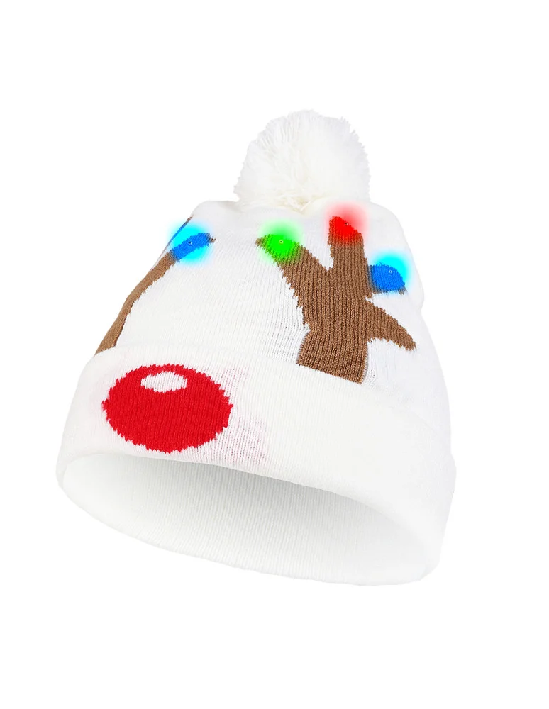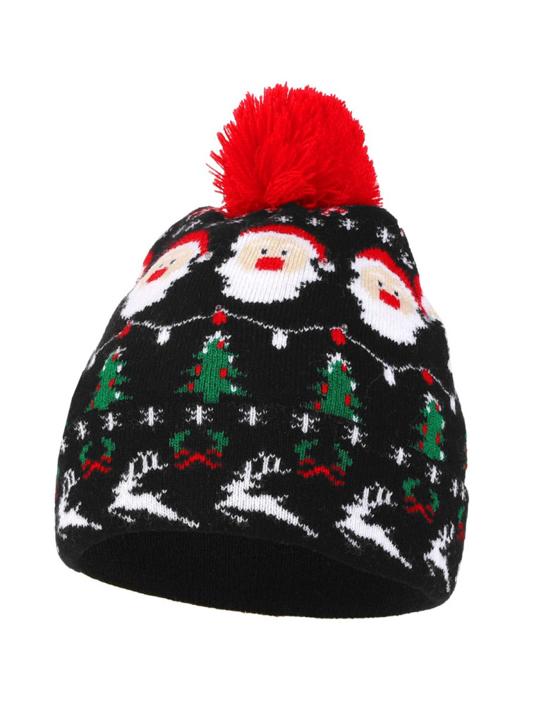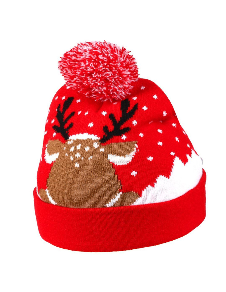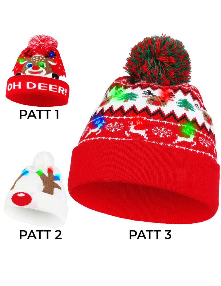 Czapka zimowa świąteczna z ledami i pomponem WZÓR 2