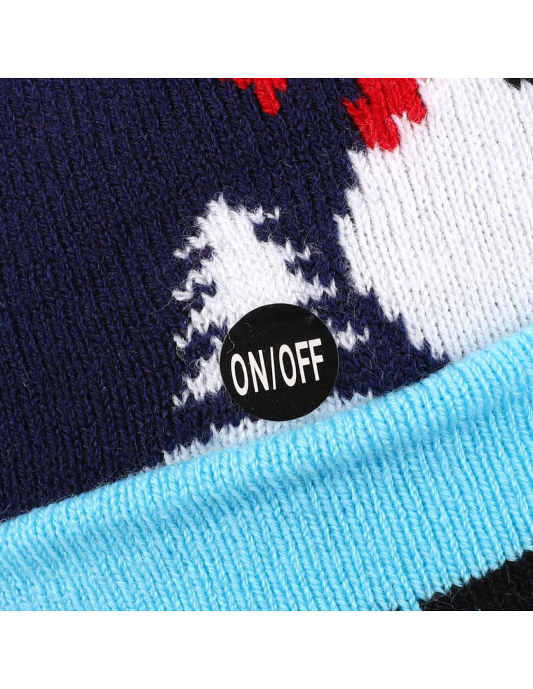 Świetlisty urok: Ta czapka zimowa jest wyposażona w subtelne LED-y, które rozbłyszczają delikatnym blaskiem, nadając Twemu wyglądowi świątecznego blasku. Możesz wybrać jedną z 3 różnych sekwencji migania LED-ów, by dopasować czapkę do swojego nastroju.