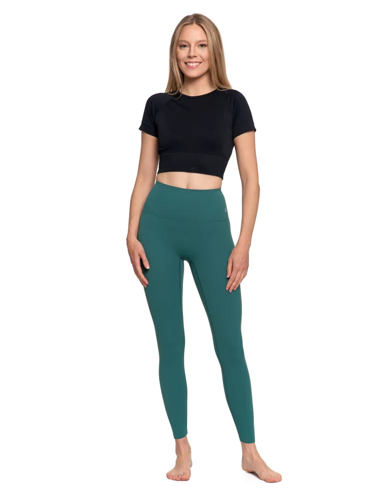 Legginsy damskie sportowe funkcyjne z wysokim stanem ZIELONY