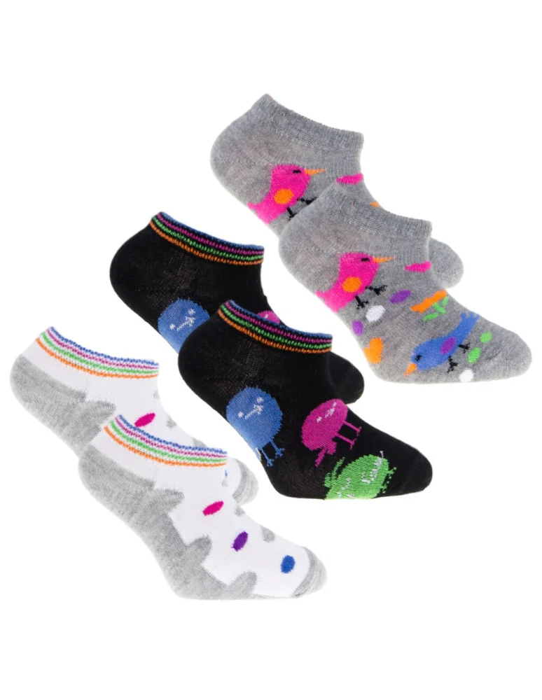 Skarpetki stopki dziewczęce bawełniane w ptaszki WIELOKOLOROWY