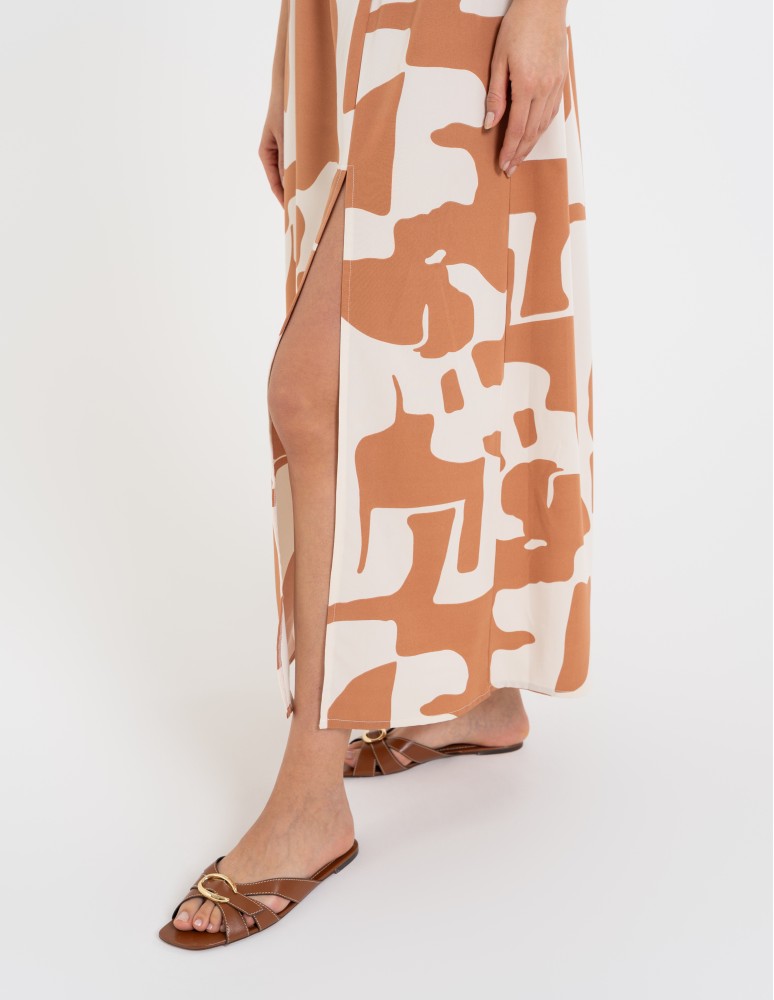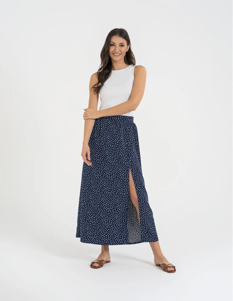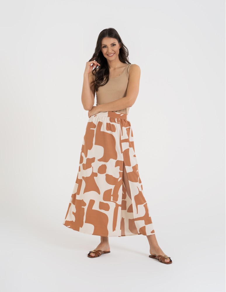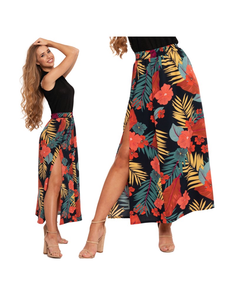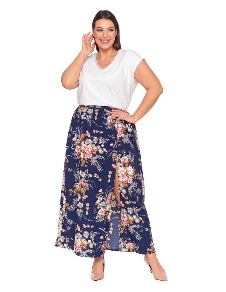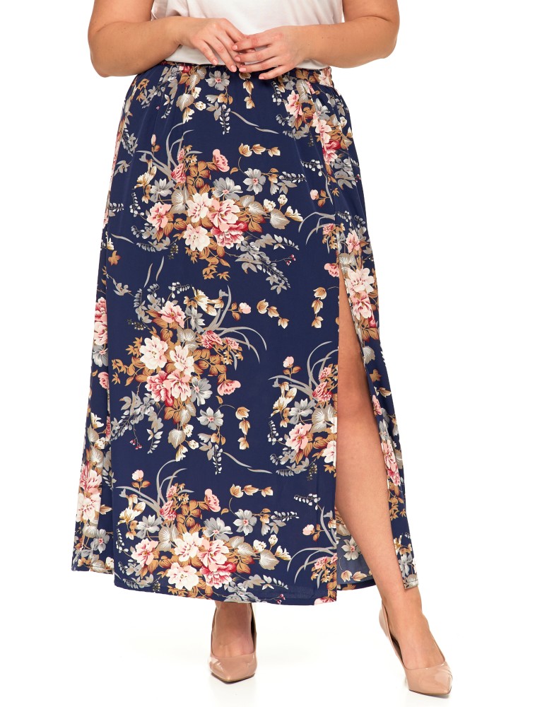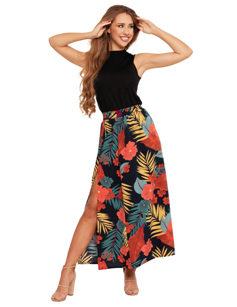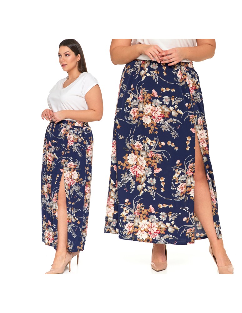 Spódnica damska maxi długa z rozcięciem wzorzysta WZÓR 6